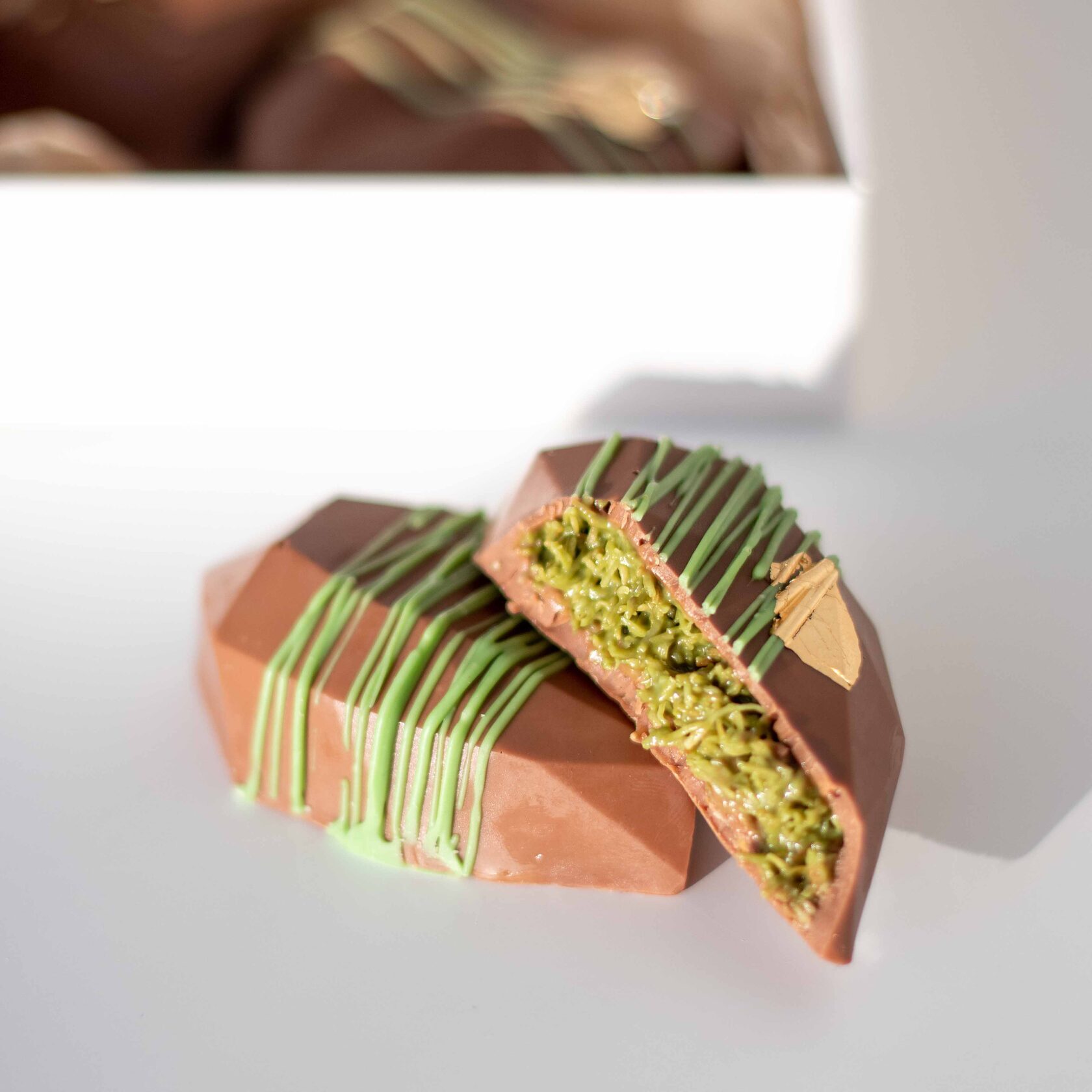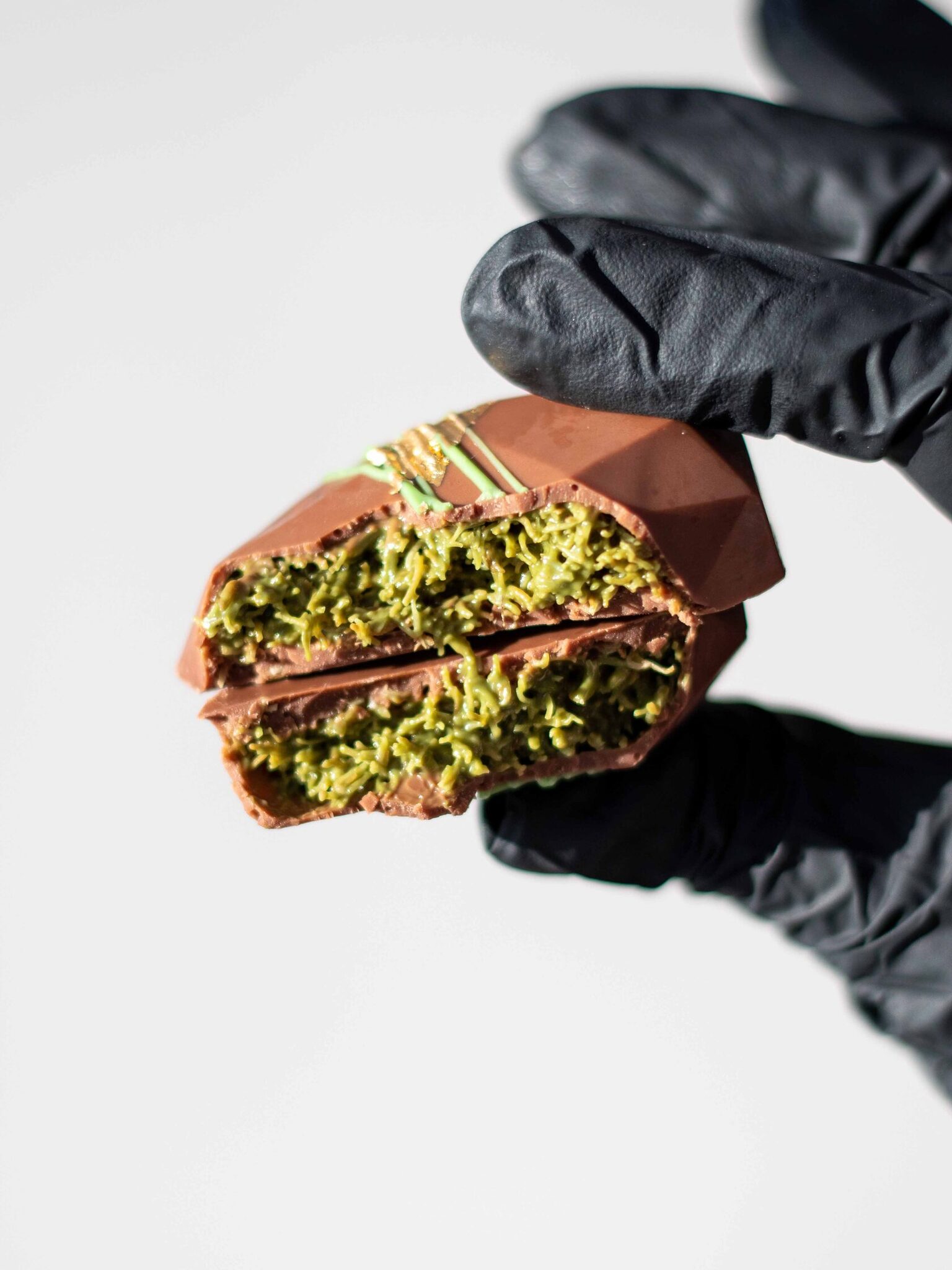 → Наши шоколадки сочетают в себе изысканный вкус молочного шоколада и текстуру хрустящей начинки. Тончайшие нити хрустящего теста Катаифи придают начинке уникальный хруст и текстуру, а фисташковая паста - необыкновенный вкус и аромат 🤤