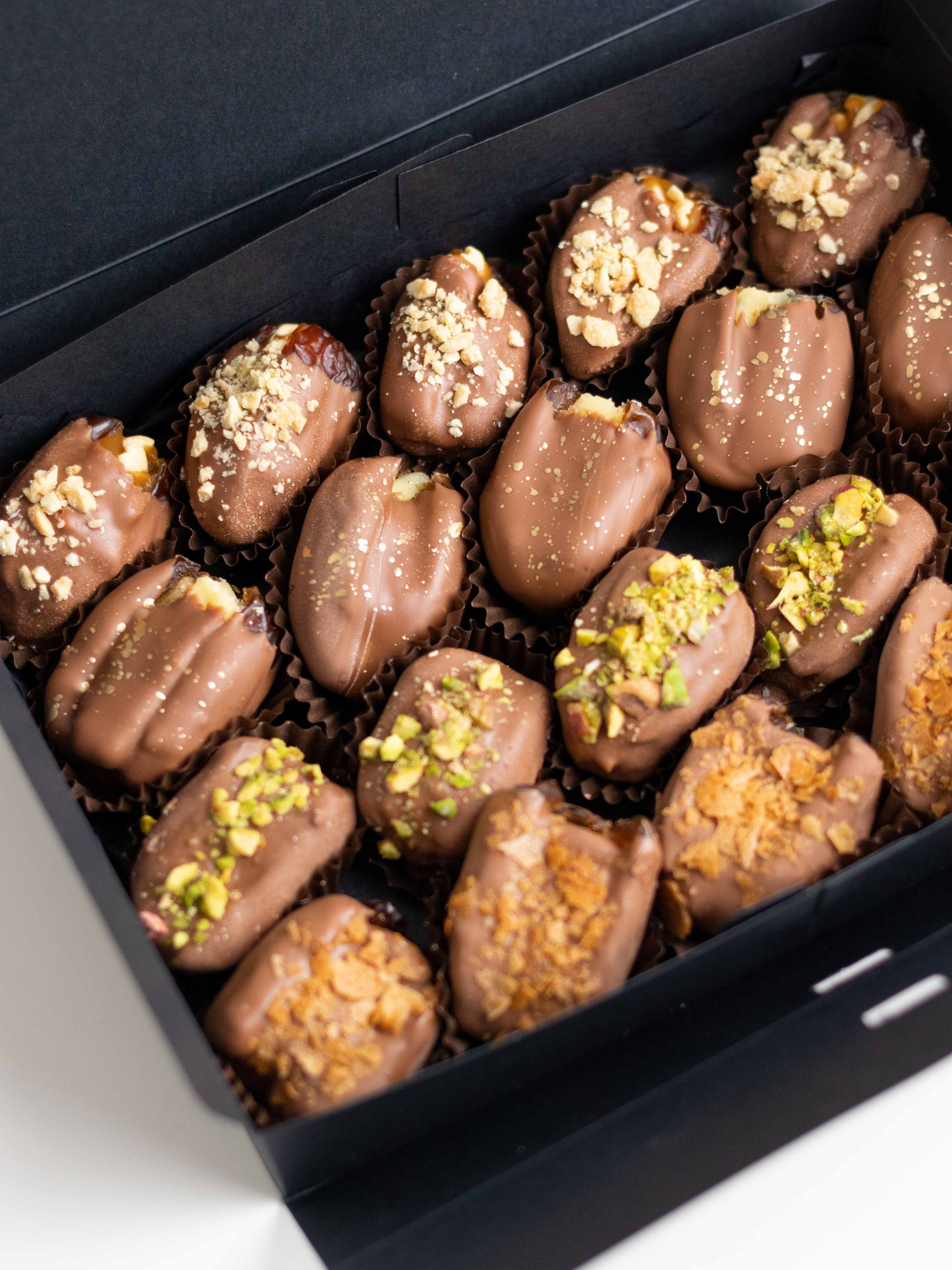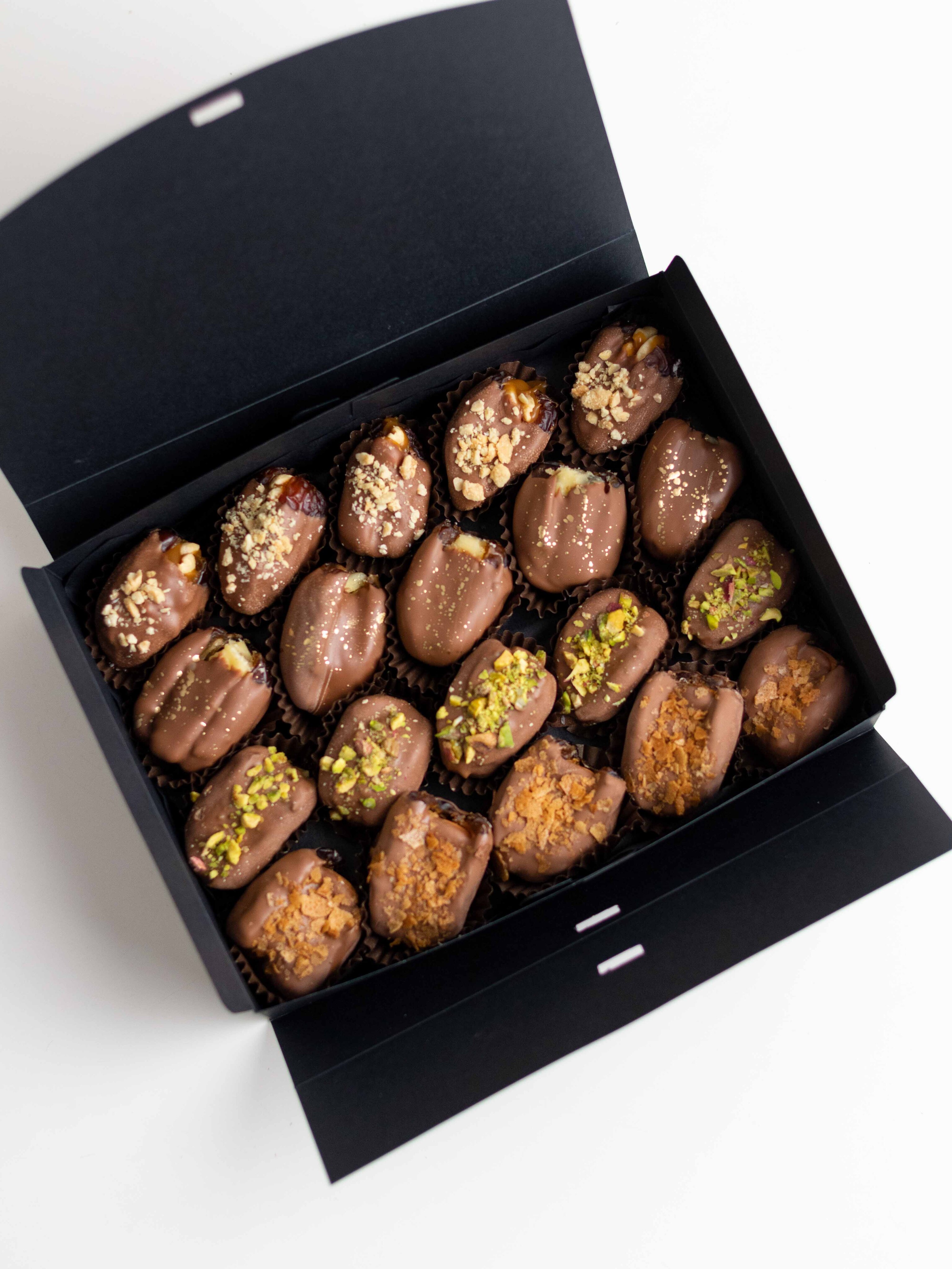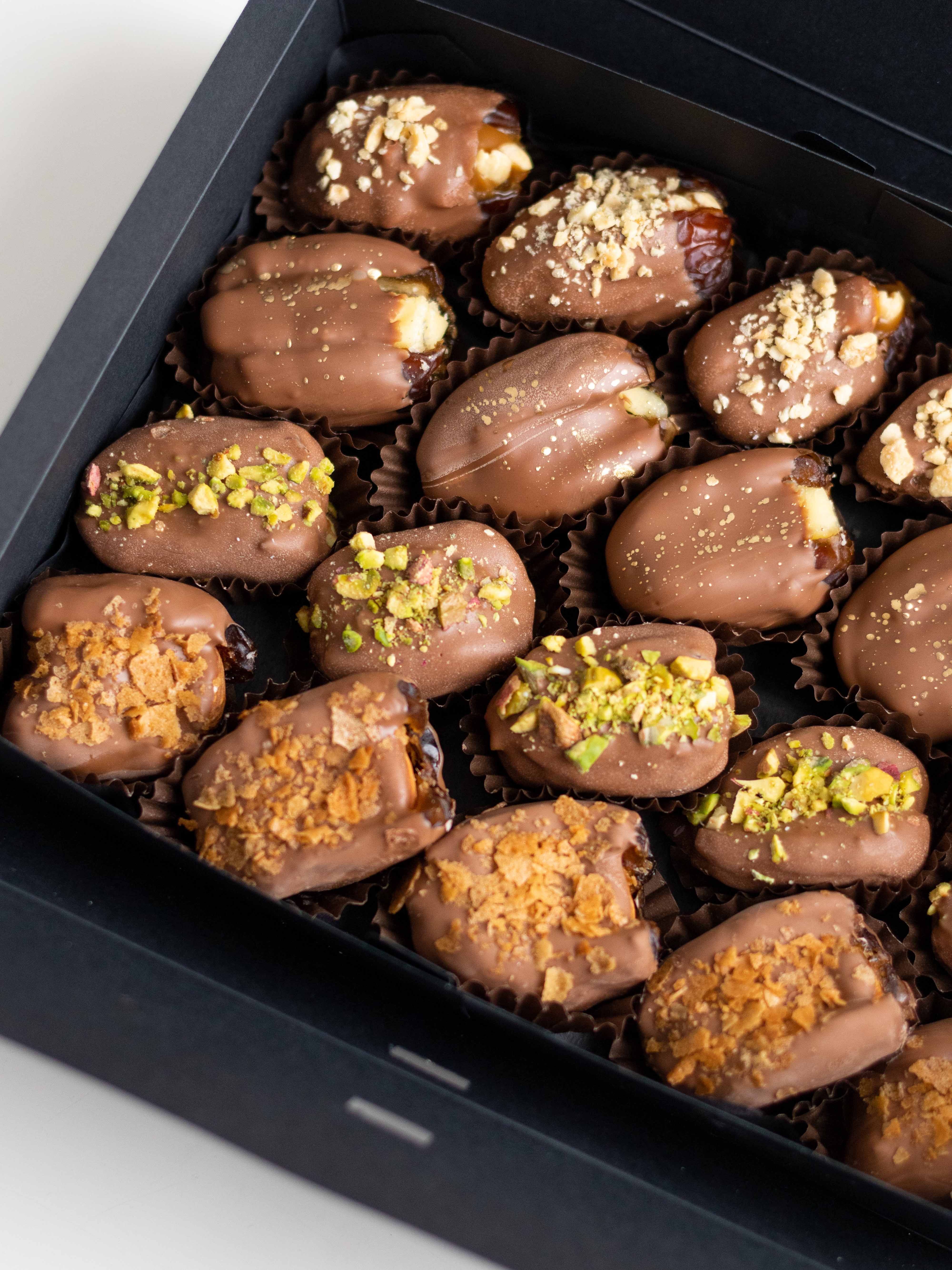 Сочетание сладости фиников, нежного шоколада и разнообразных текстур делает этот набор по-настоящему насыщенным и запоминающимся. Идеально подойдёт в качестве подарка или десерта, который хочется смаковать!