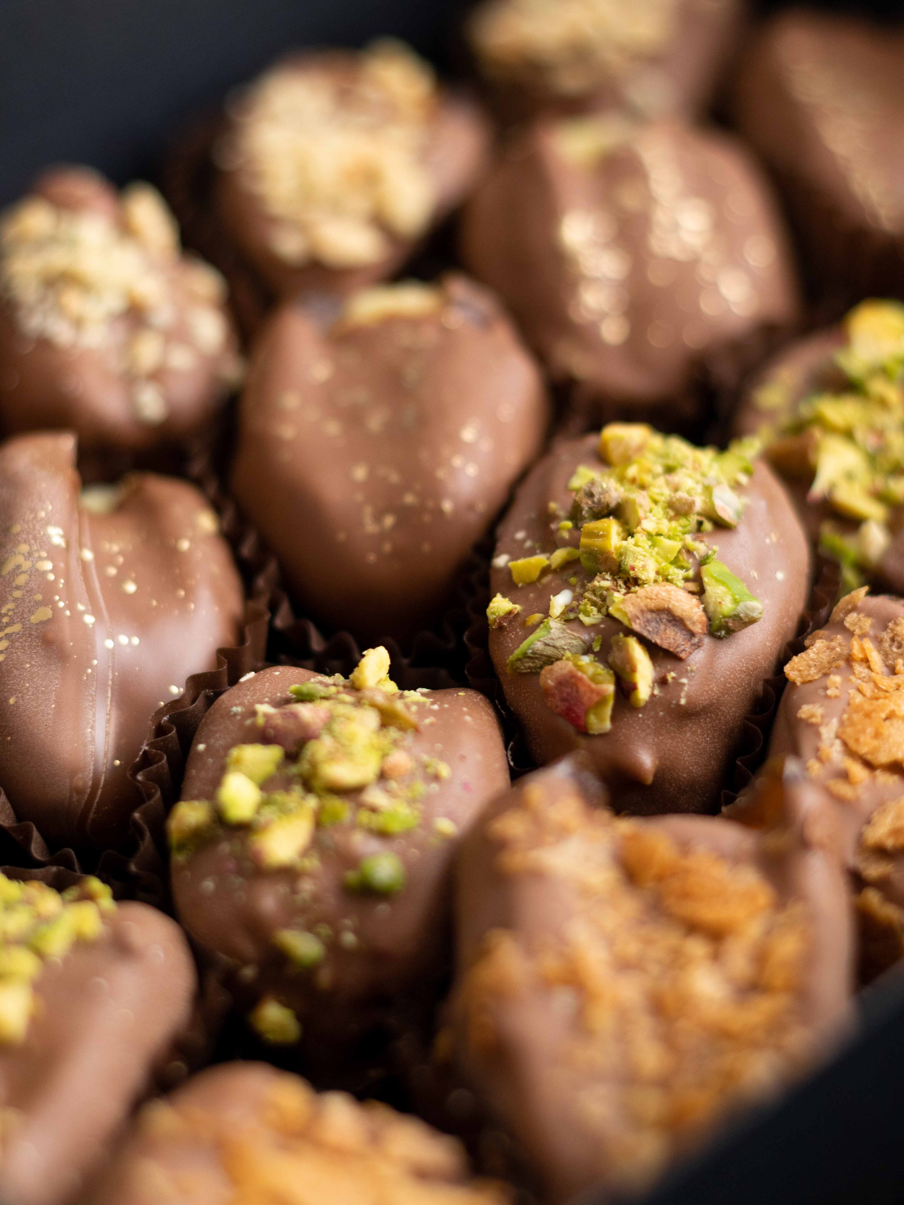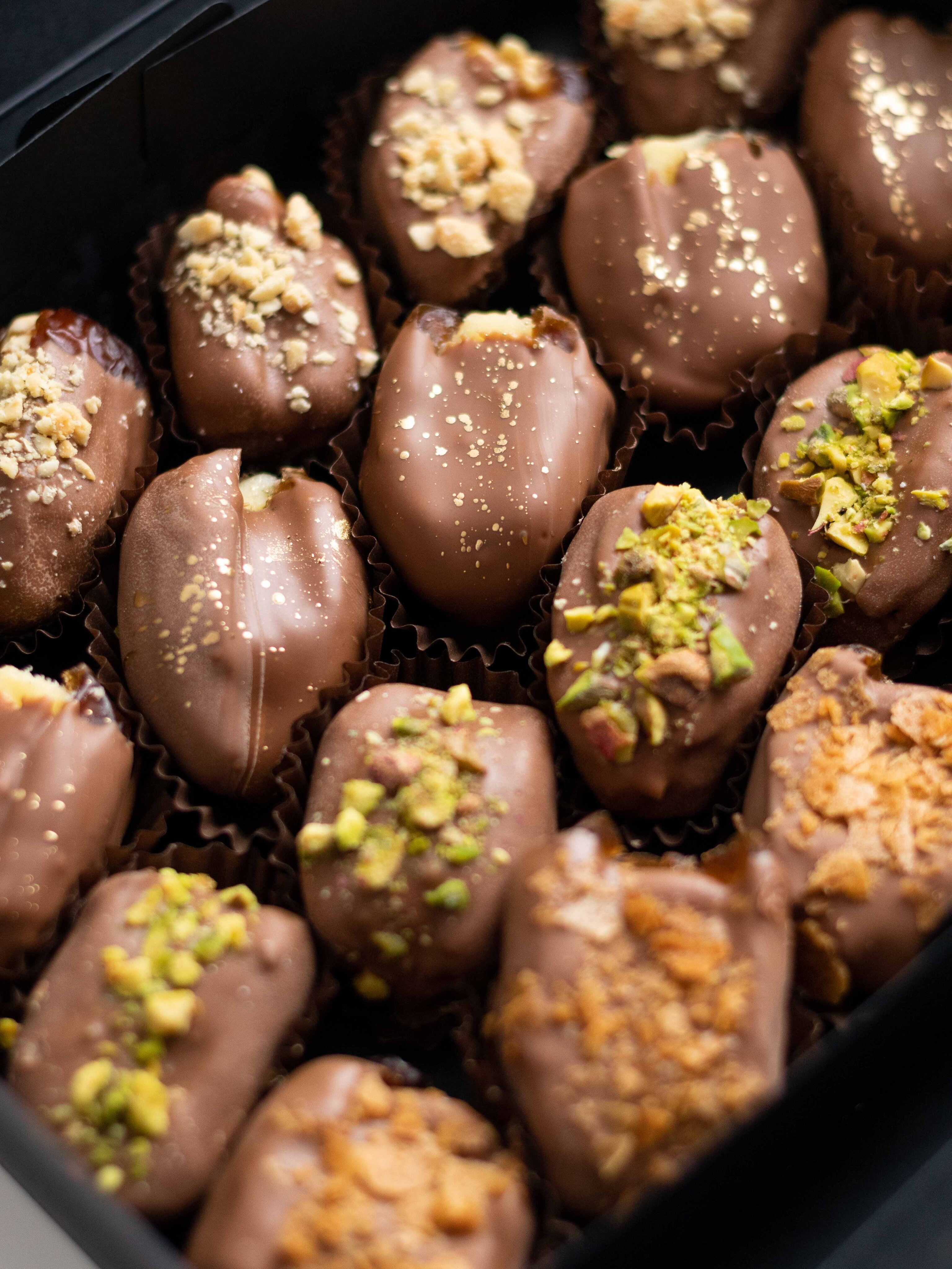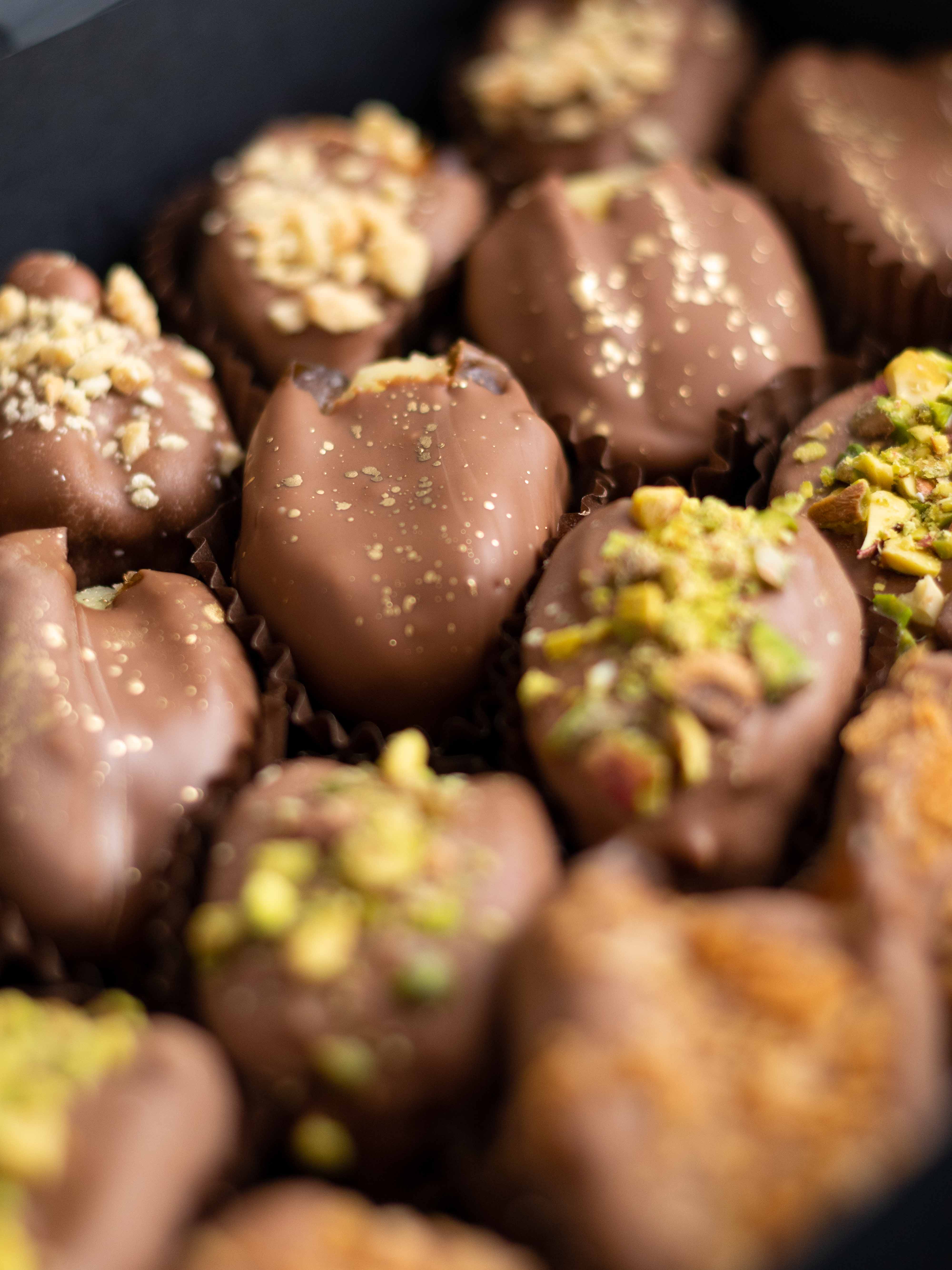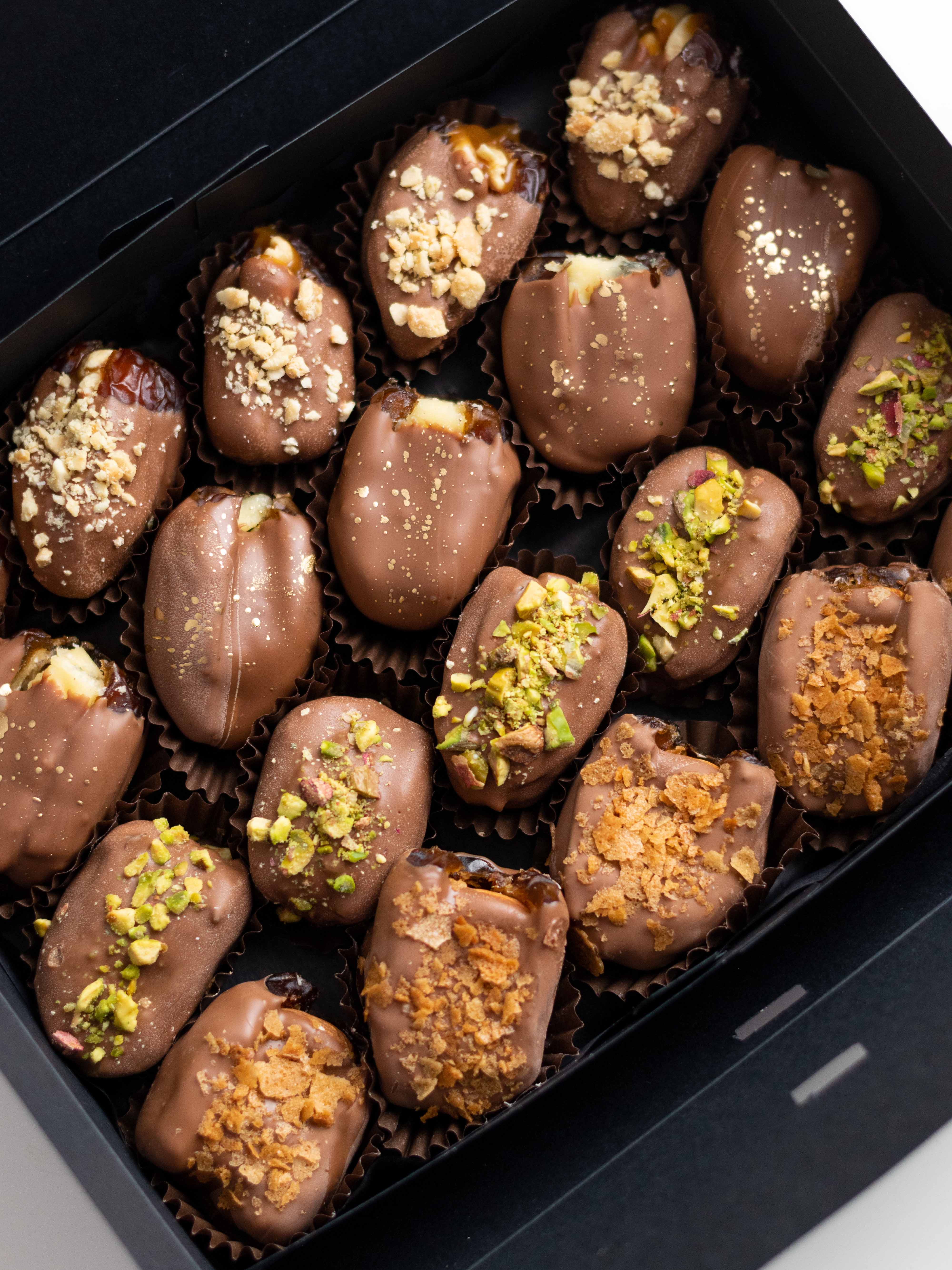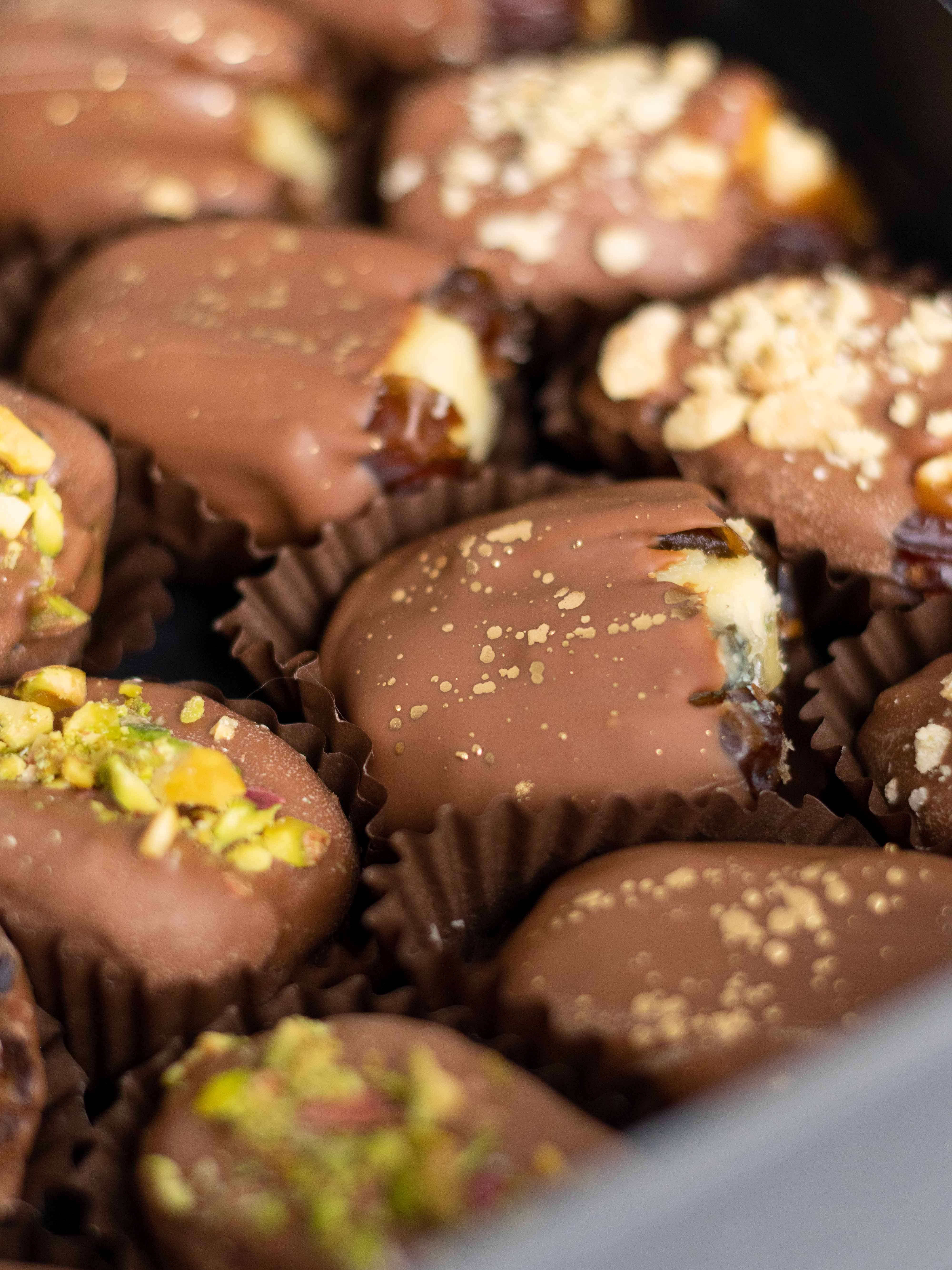 Изысканный набор фиников в шоколаде с авторскими начинками — десерт, в котором каждая конфета раскрывается по-своему!