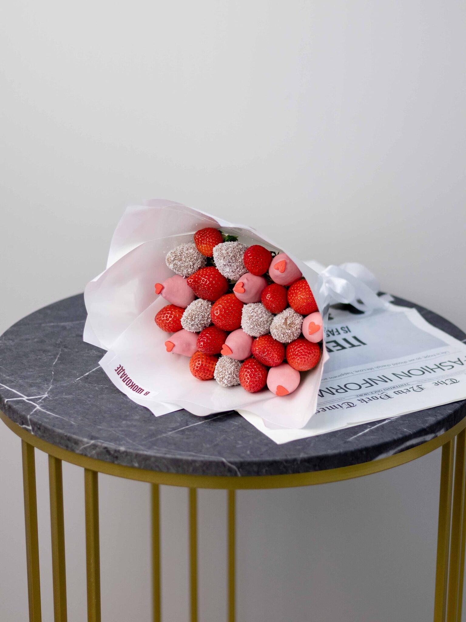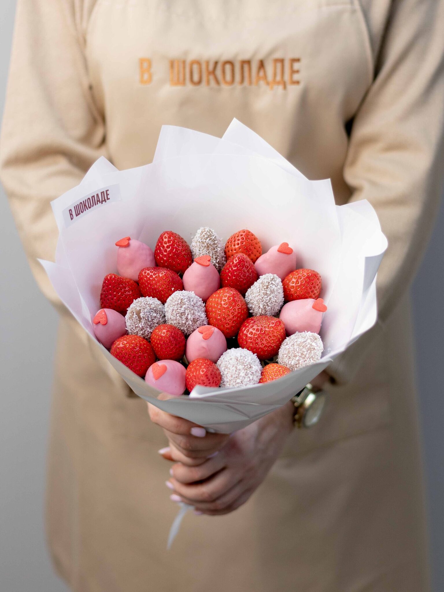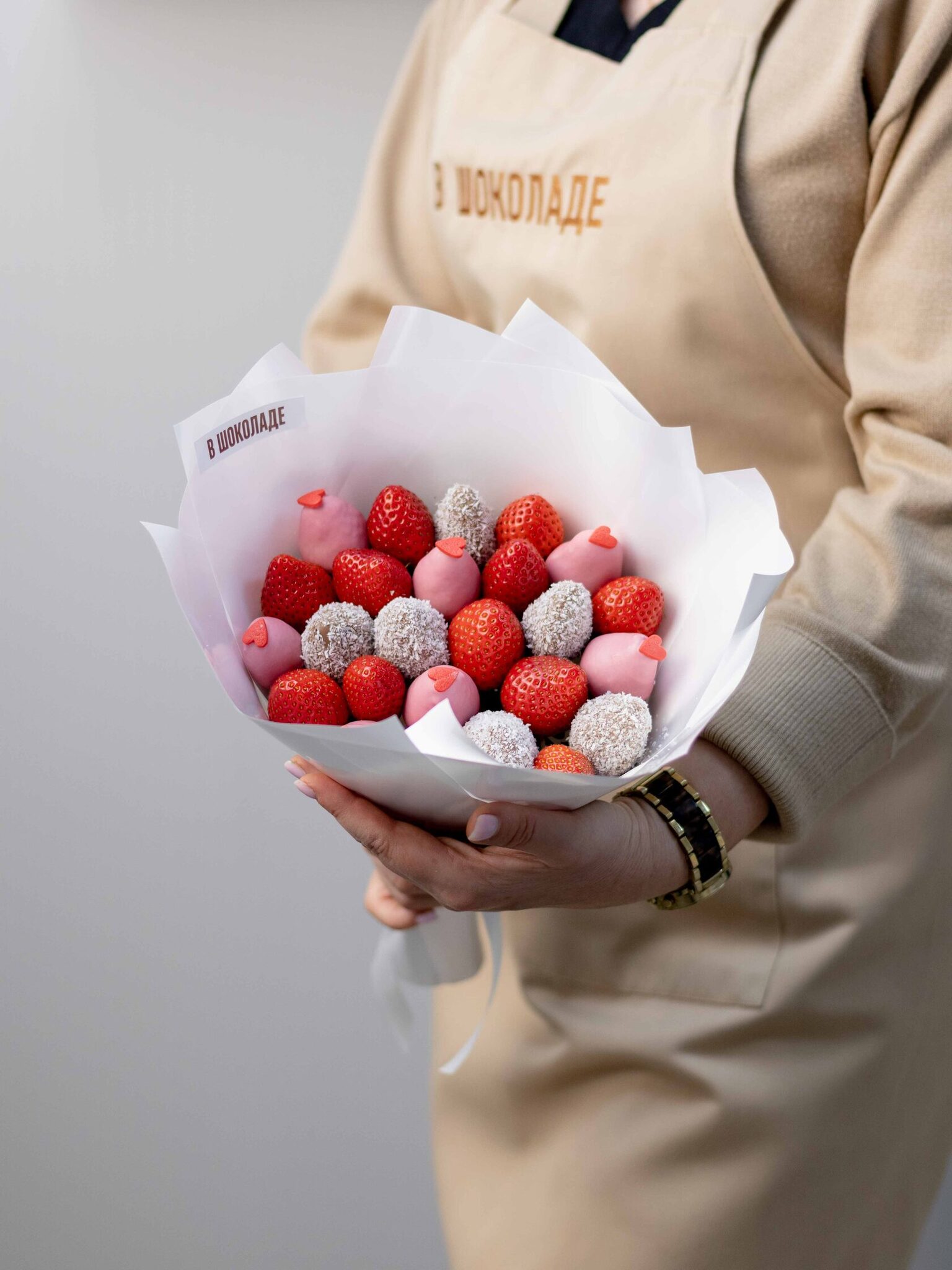 Мы рекомендуем насладиться ягодами в течение 12 часов с момента покупки и при необходимости хранить букет в холодильнике при температуре от +4 до +10 С