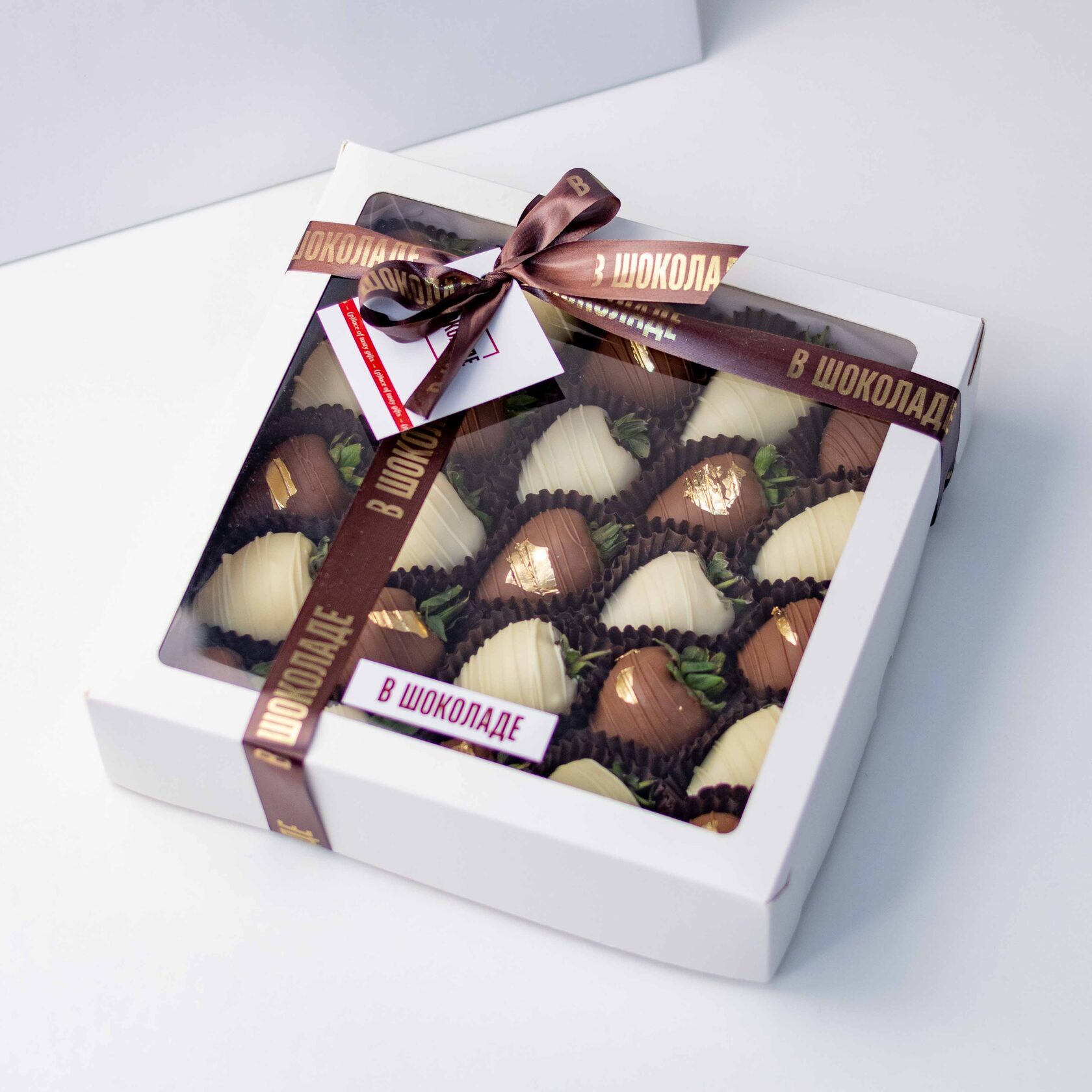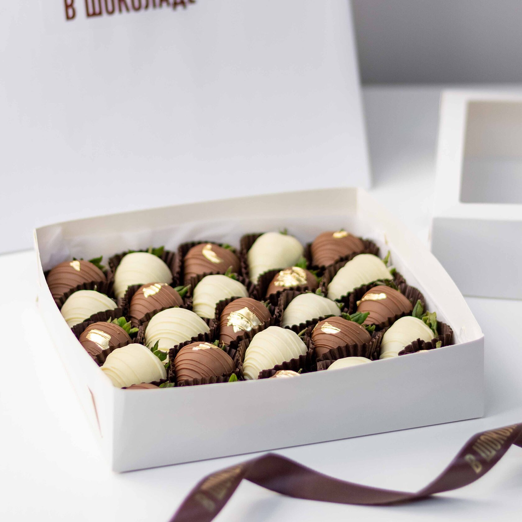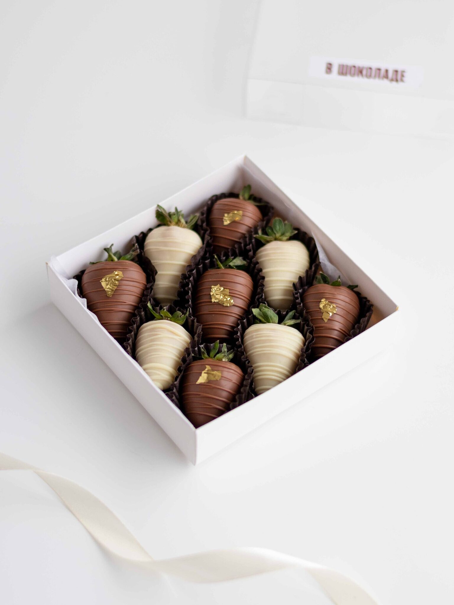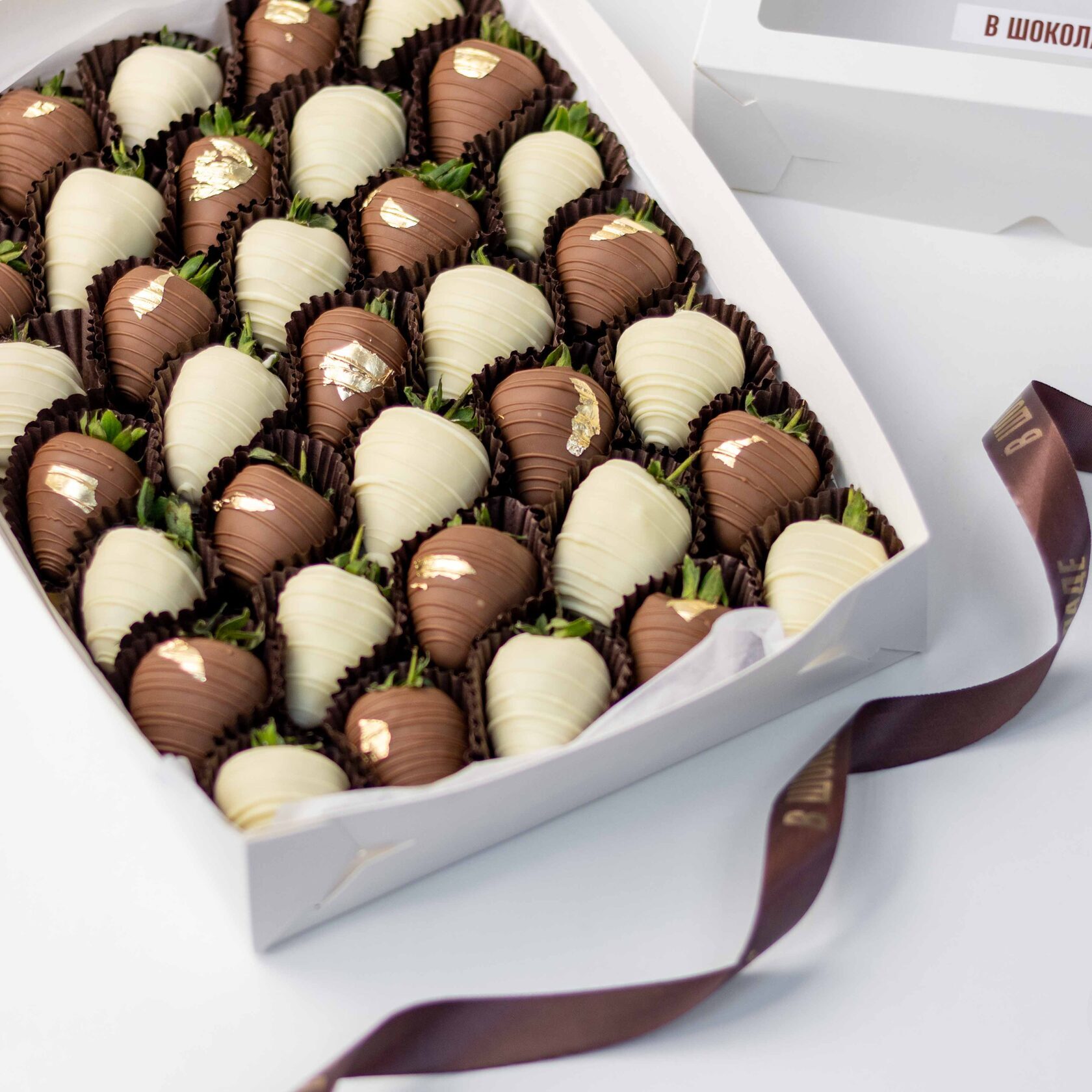 Клубника свежая отборная⁣⁣⁣, Шоколад белый, Шоколад молочный, Золото сусальное пищевое