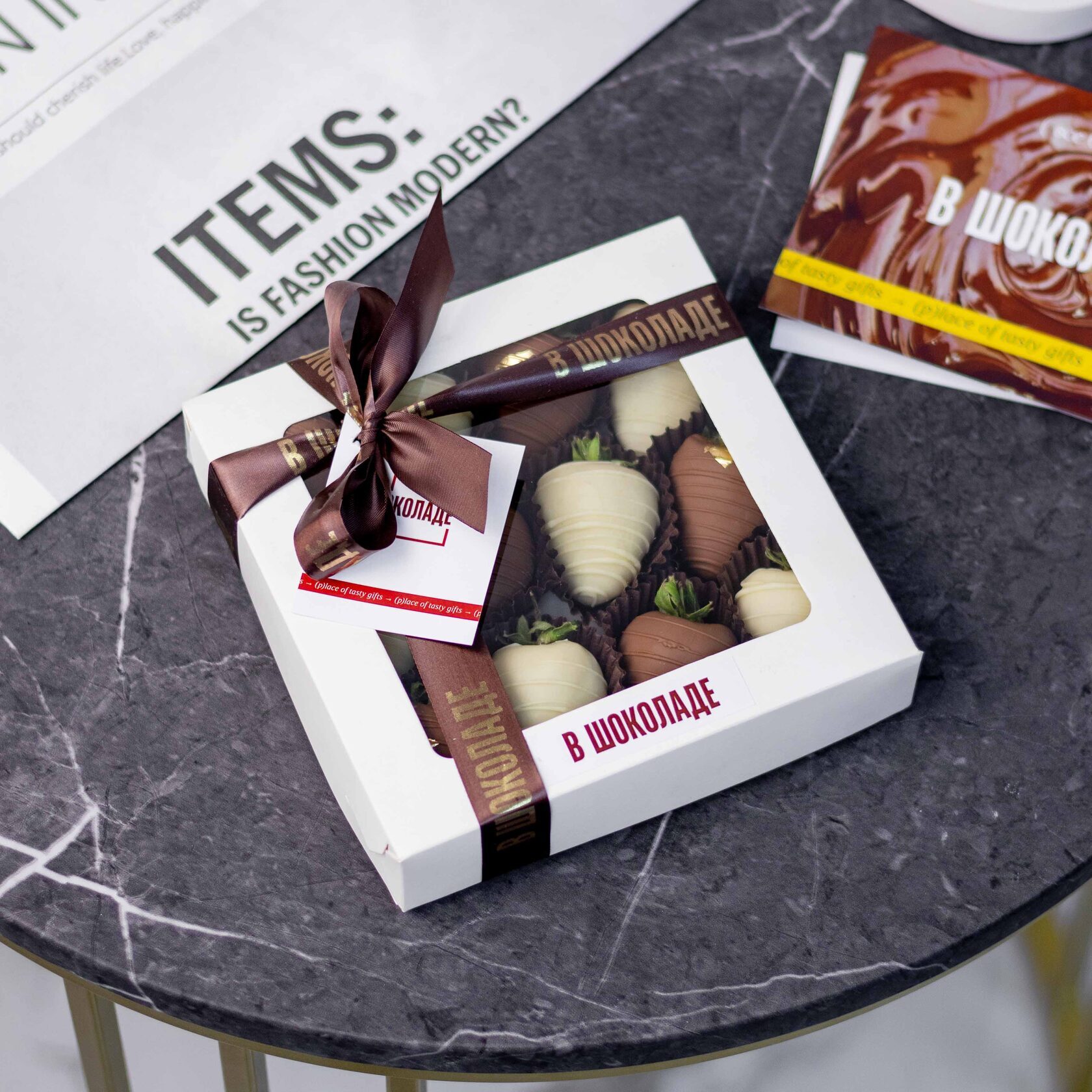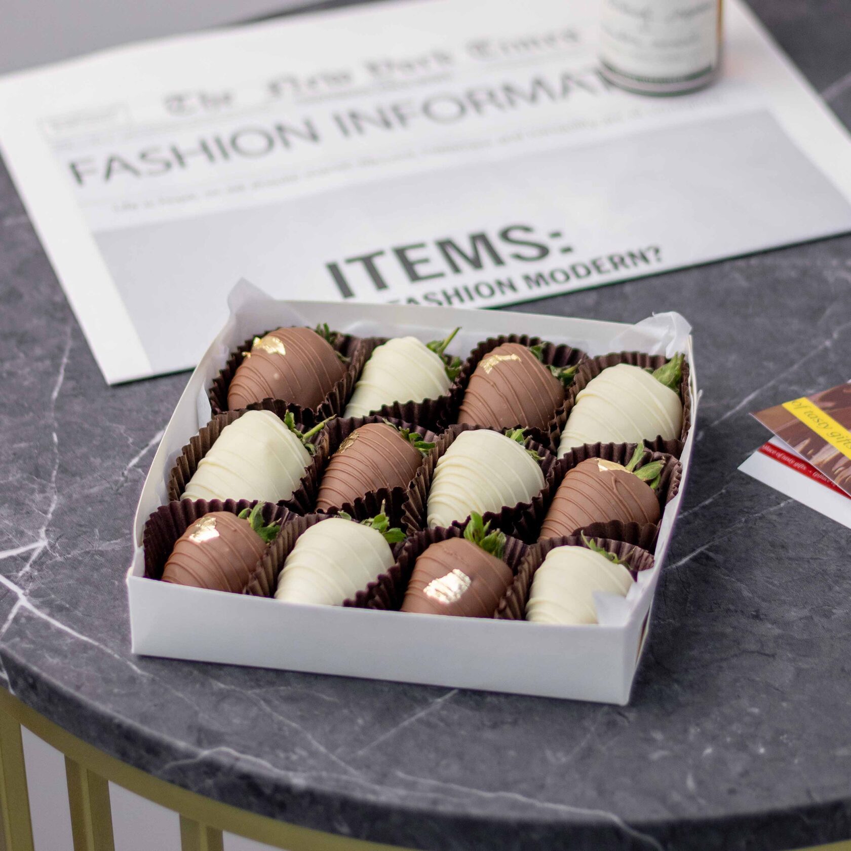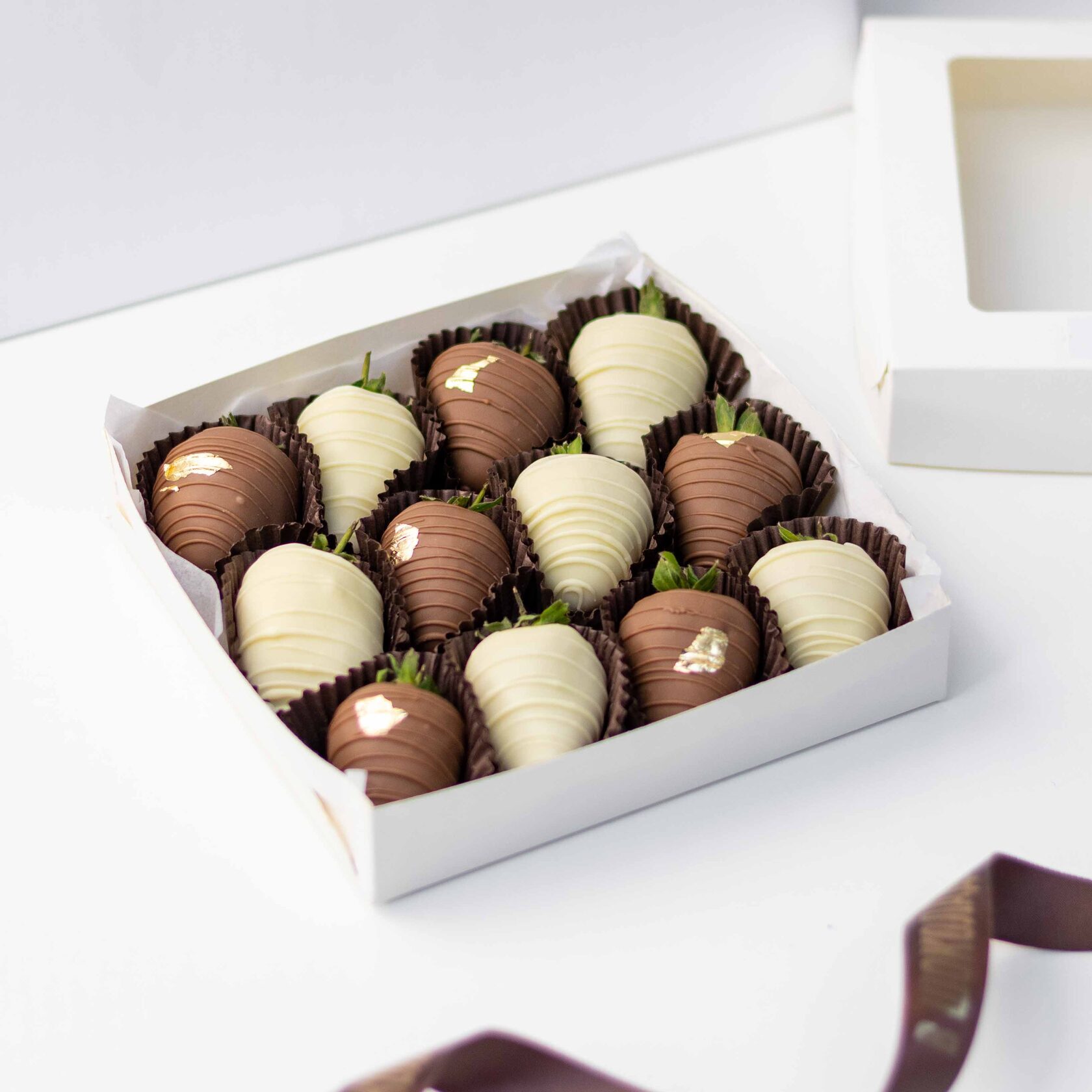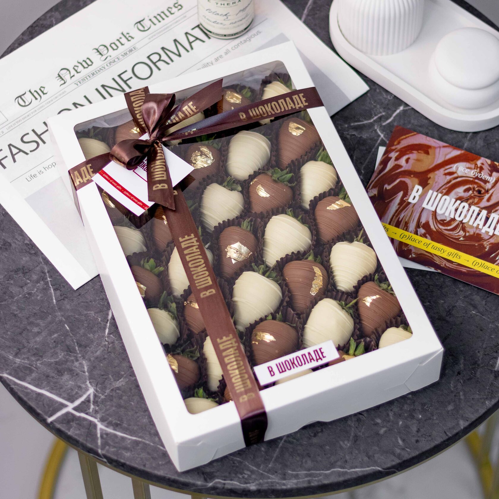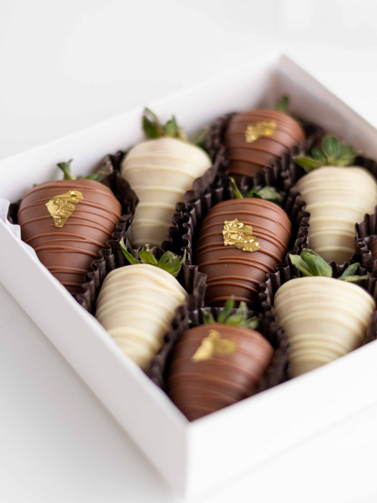 Клубника свежая отборная⁣⁣⁣, Шоколад белый, Шоколад молочный, Золото сусальное пищевое