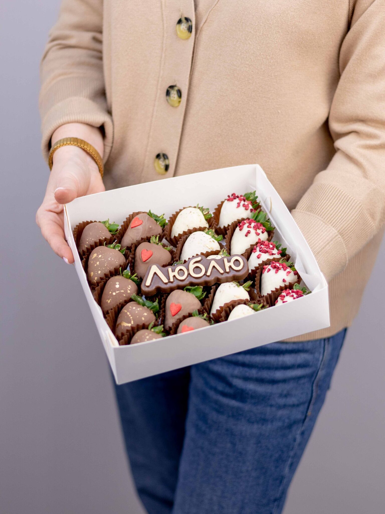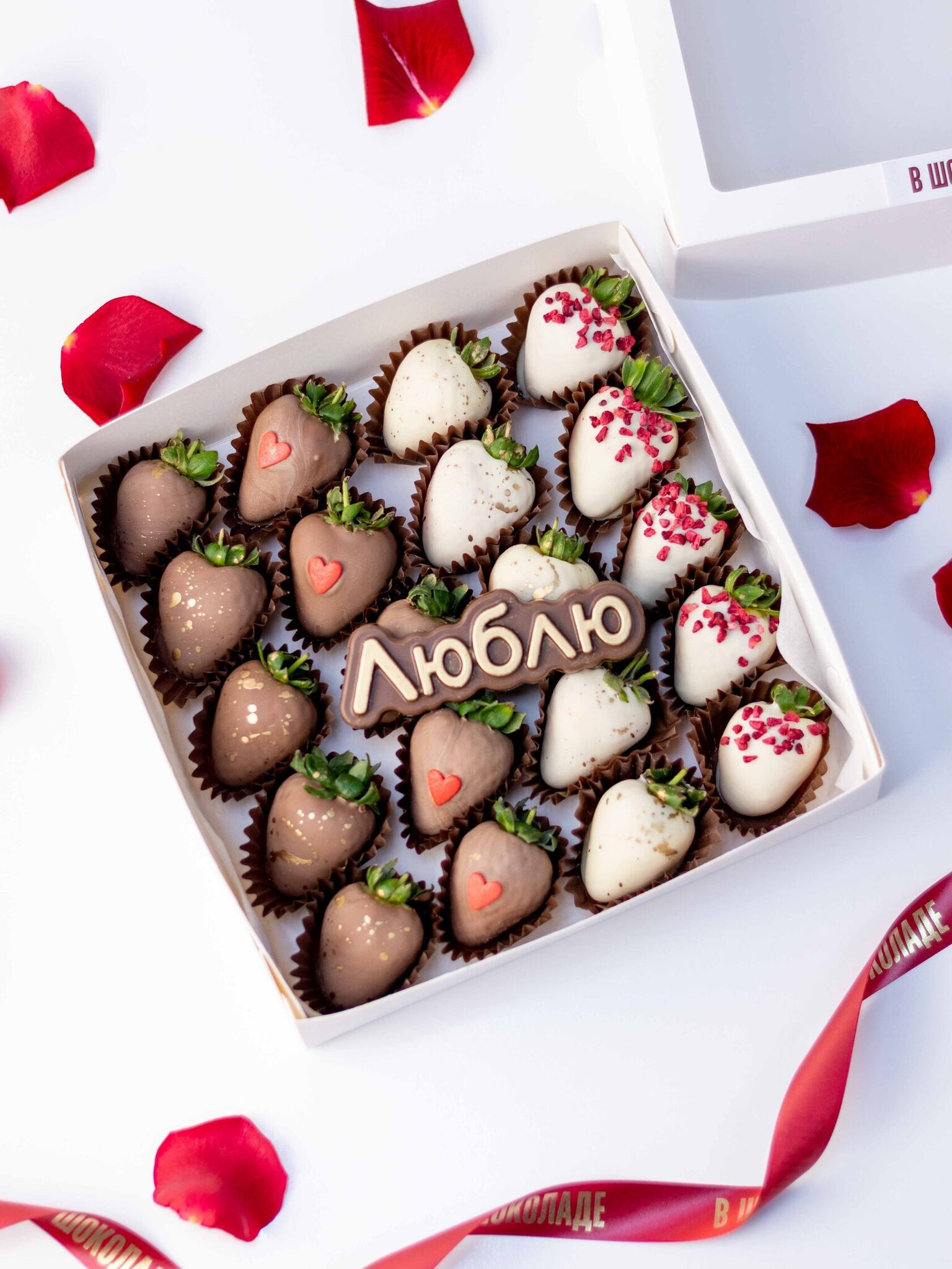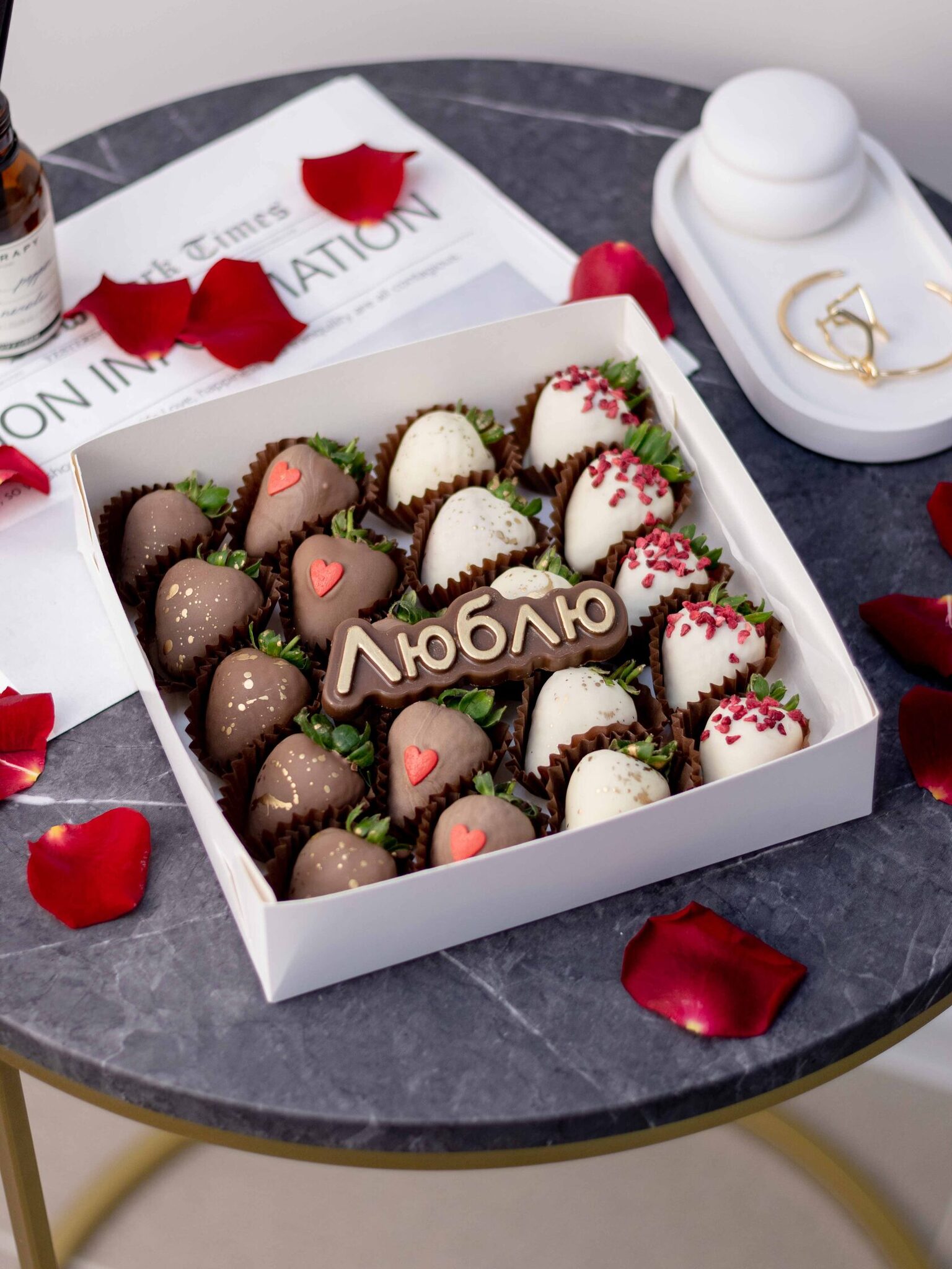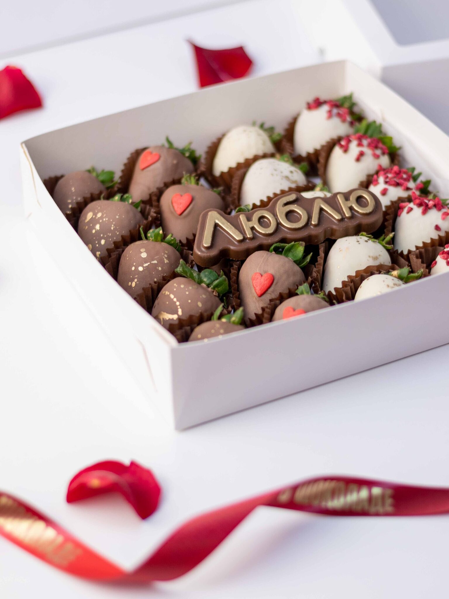 Мы работаем с клубникой сорта «Альбион» (Армения), а зимой - с египетской и греческой. Каждая ягода проходит ручной отбор. Покрываем её бельгийским шоколадом Barry Callebaut и Sicao, не используя глазурь и заменители.