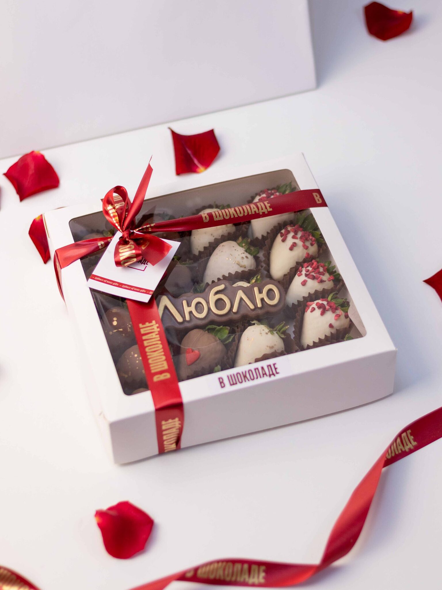 В своих композициях мы используем только свежие ягоды и натуральный бельгийский шоколад известной марки Callebaut.