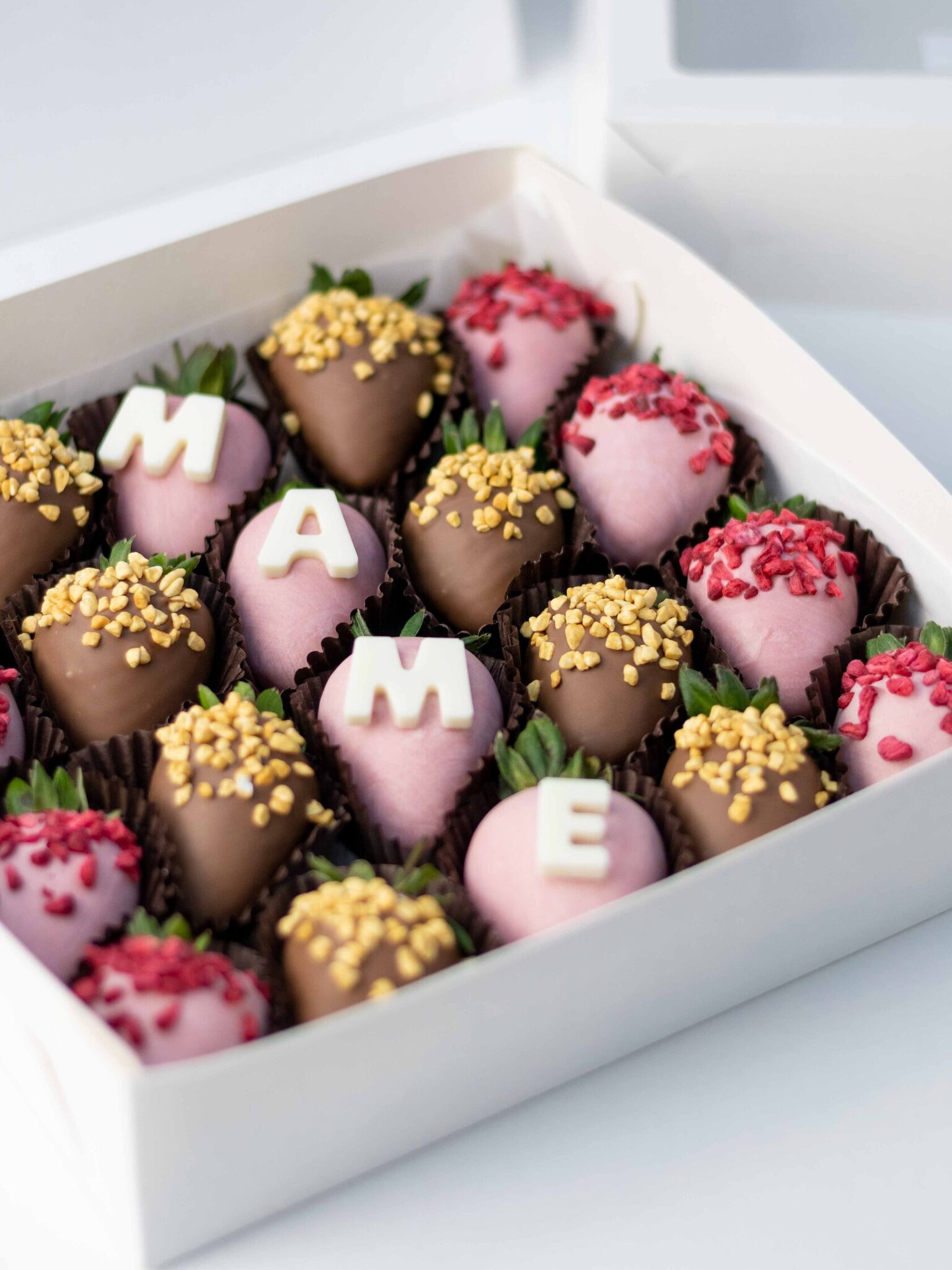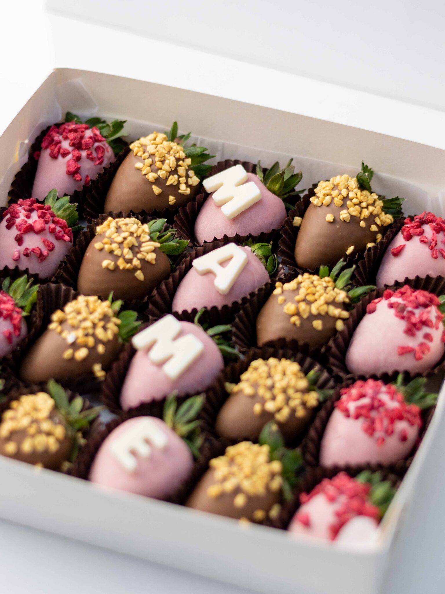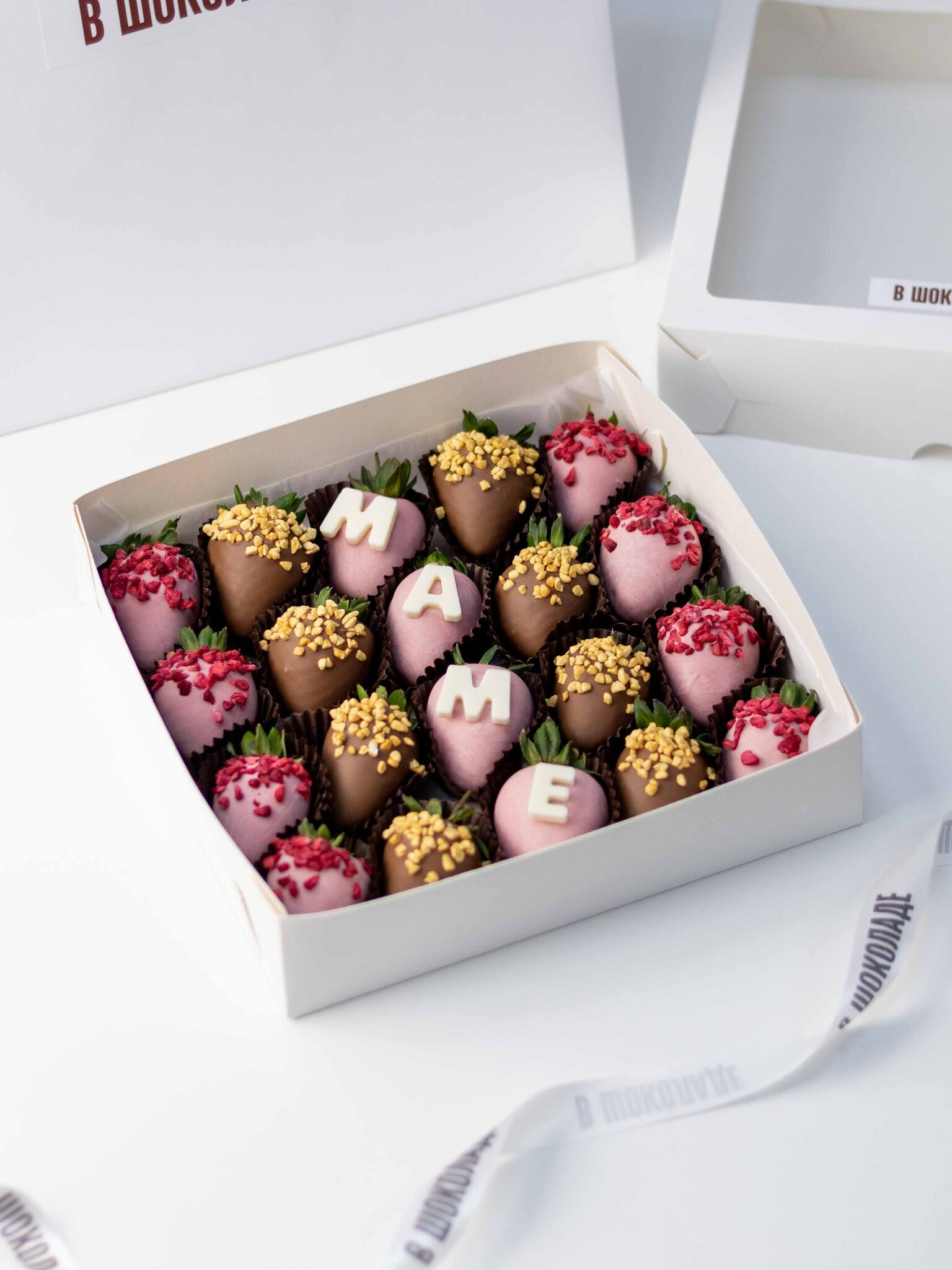 Мы работаем с клубникой сорта «Альбион» (Армения), а зимой - с египетской и греческой. Каждая ягода проходит ручной отбор. Покрываем её бельгийским шоколадом Barry Callebaut и Sicao, не используя глазурь и заменители.