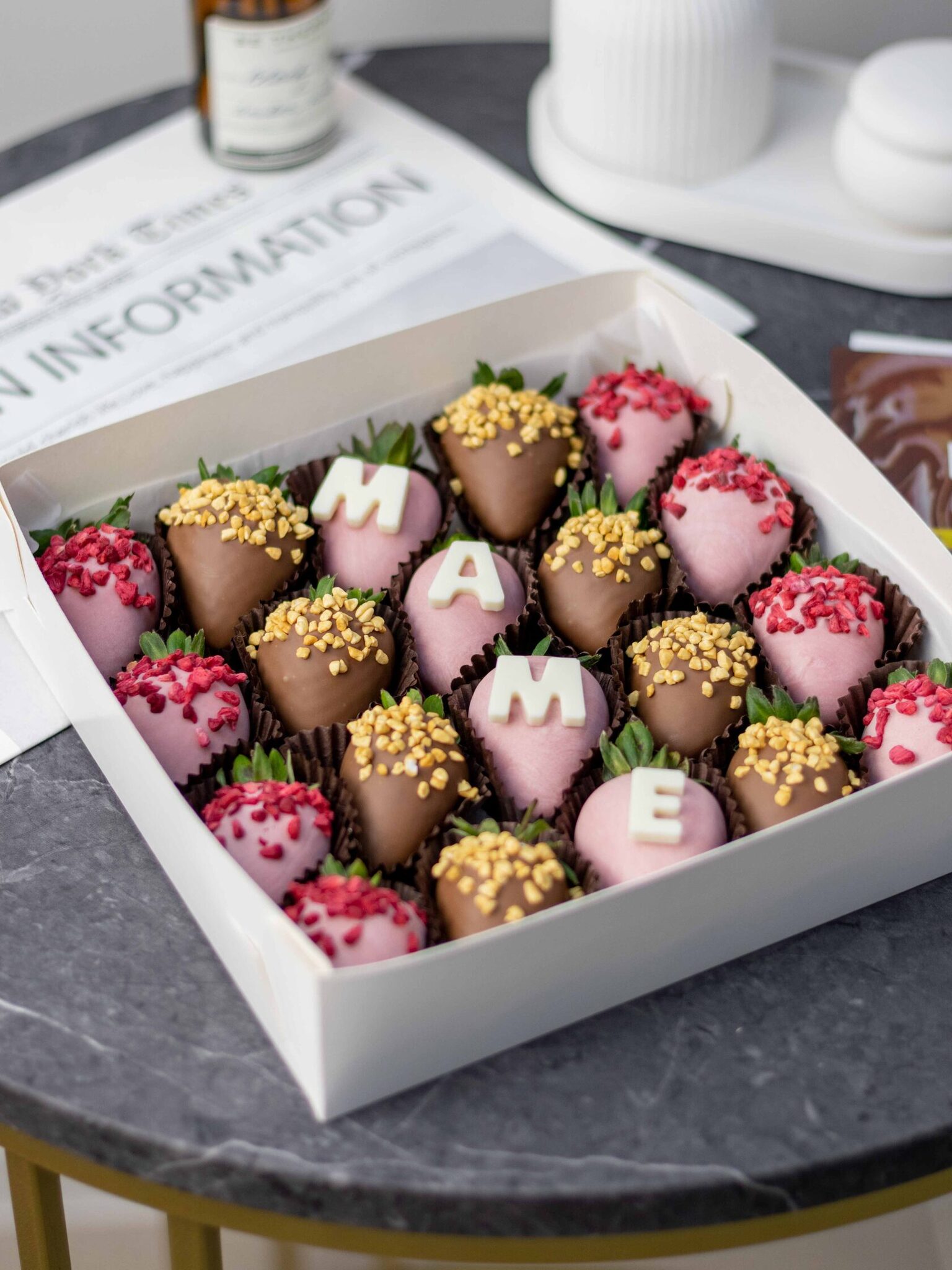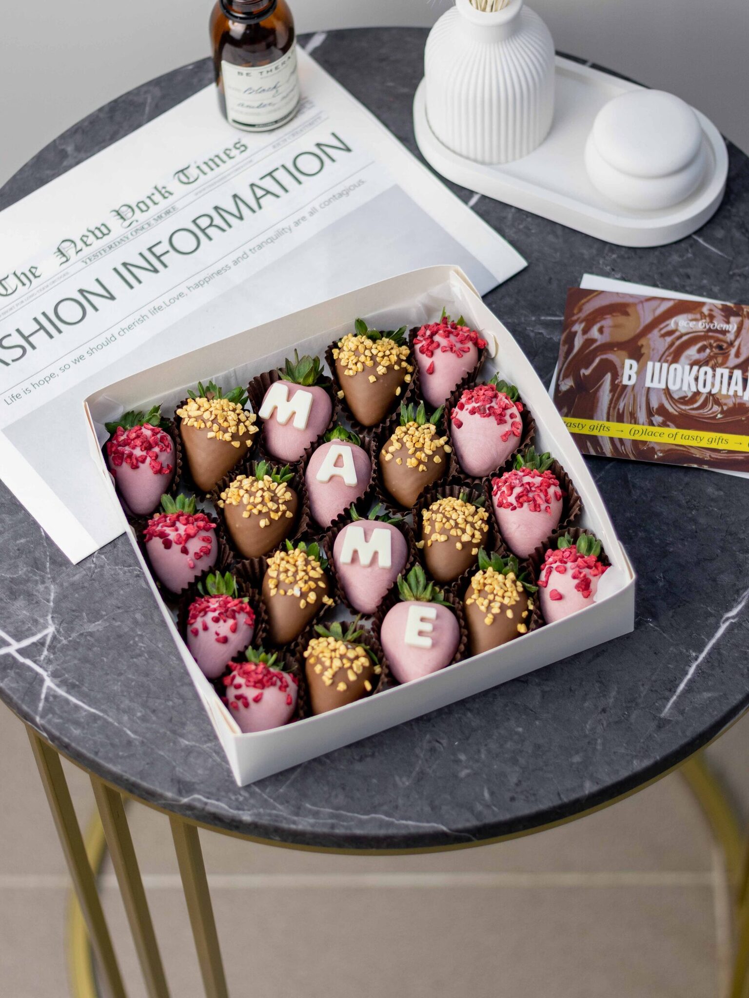 Мы работаем с клубникой в шоколаде, которая имеет ограниченный срок годности. Каждый заказ собирается индивидуально под клиента, поэтому после того, как кондитер соберет ваш подарок, его нельзя будет использоваться в других заказах.