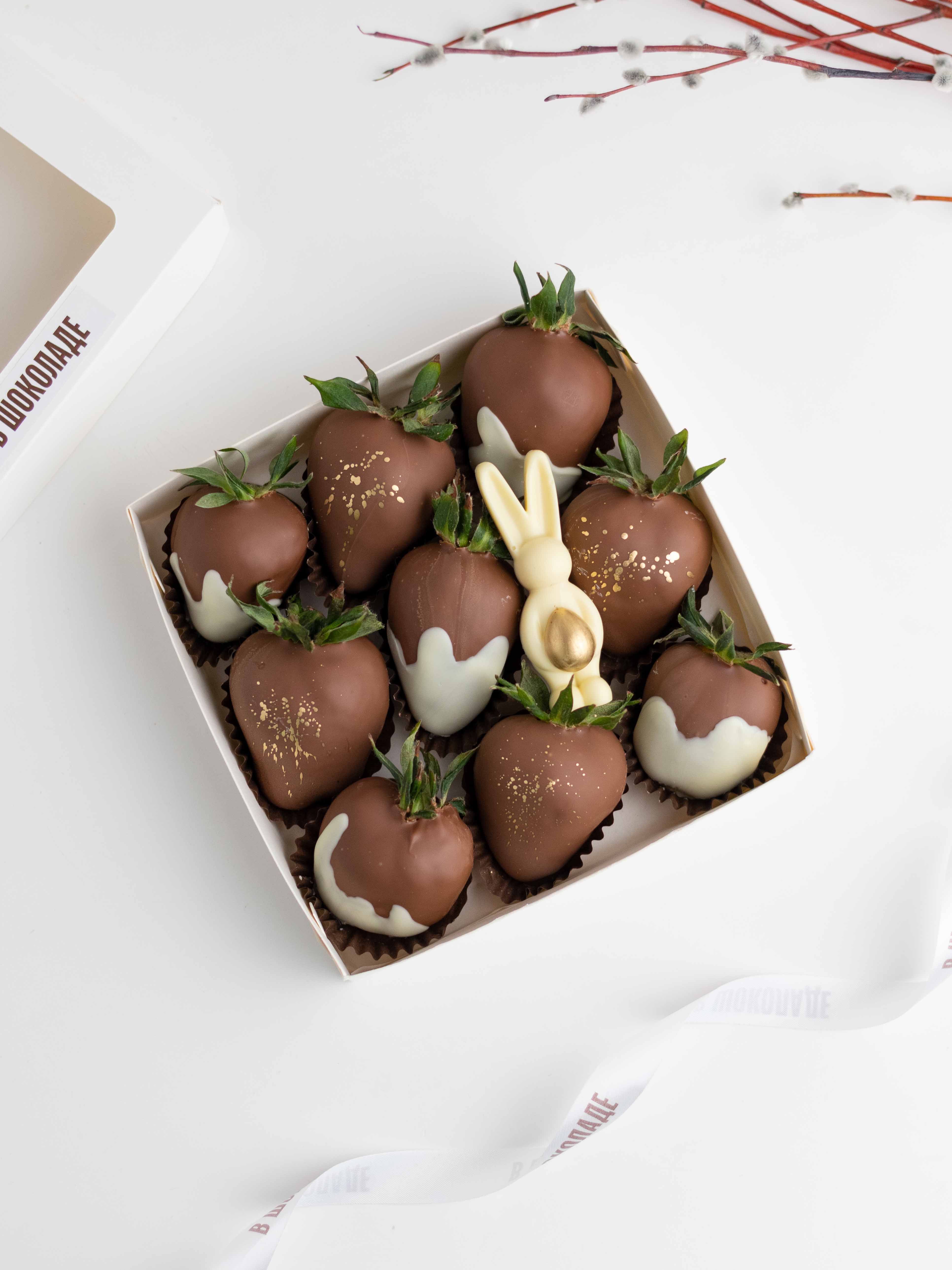 Пасхальный кролик — набор клубники в бельгийском молочном шоколаде с тёплым, праздничным настроением и аккуратным пасхальным акцентом 🐰