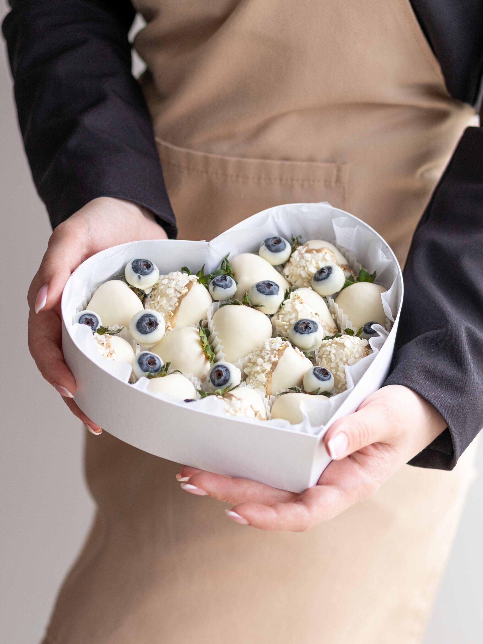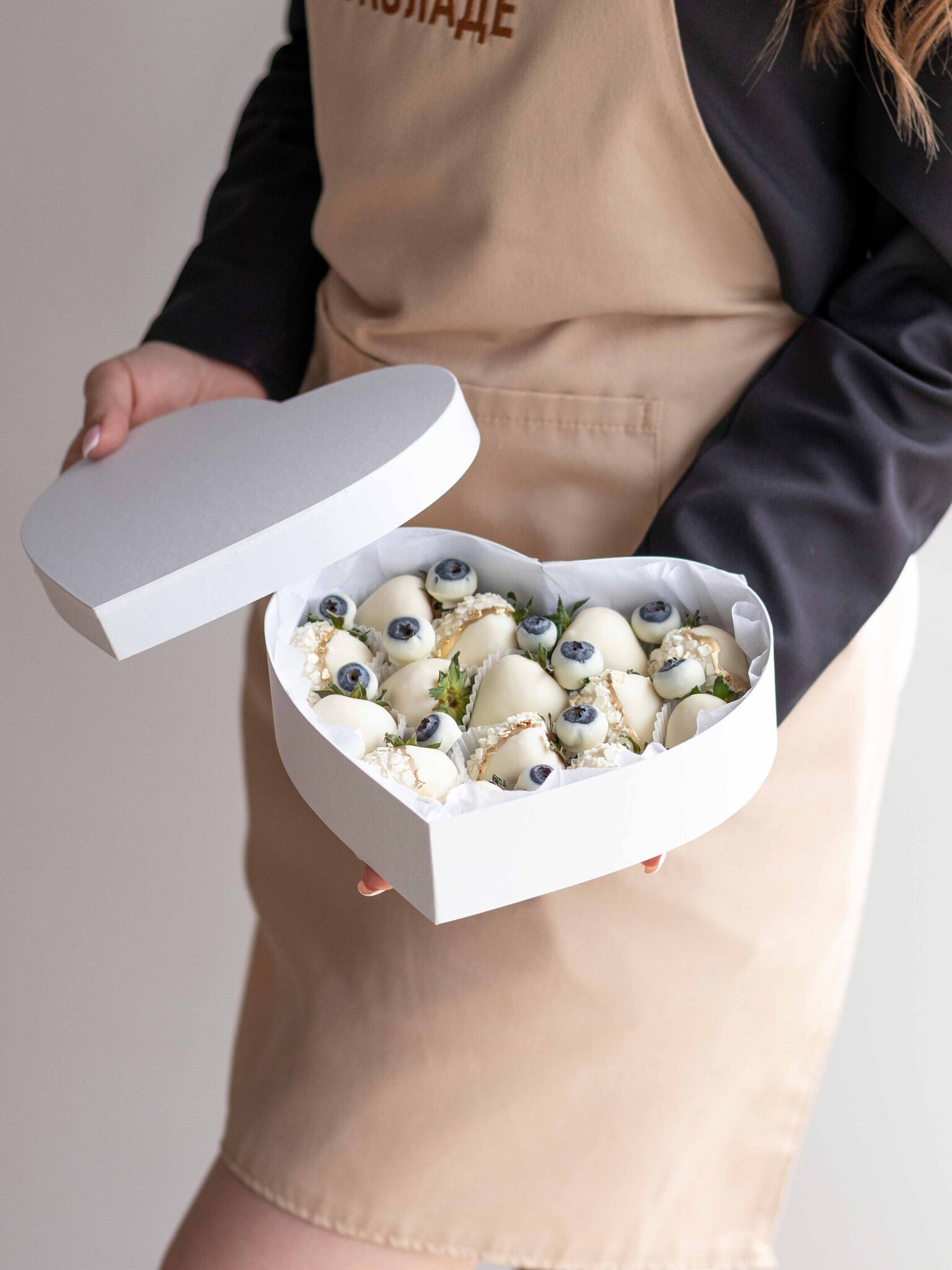 Мы работаем с клубникой сорта «Альбион» (Армения), а зимой - с египетской и греческой. Каждая ягода проходит ручной отбор. Покрываем её бельгийским шоколадом Barry Callebaut и Sicao, не используя глазурь и заменители.