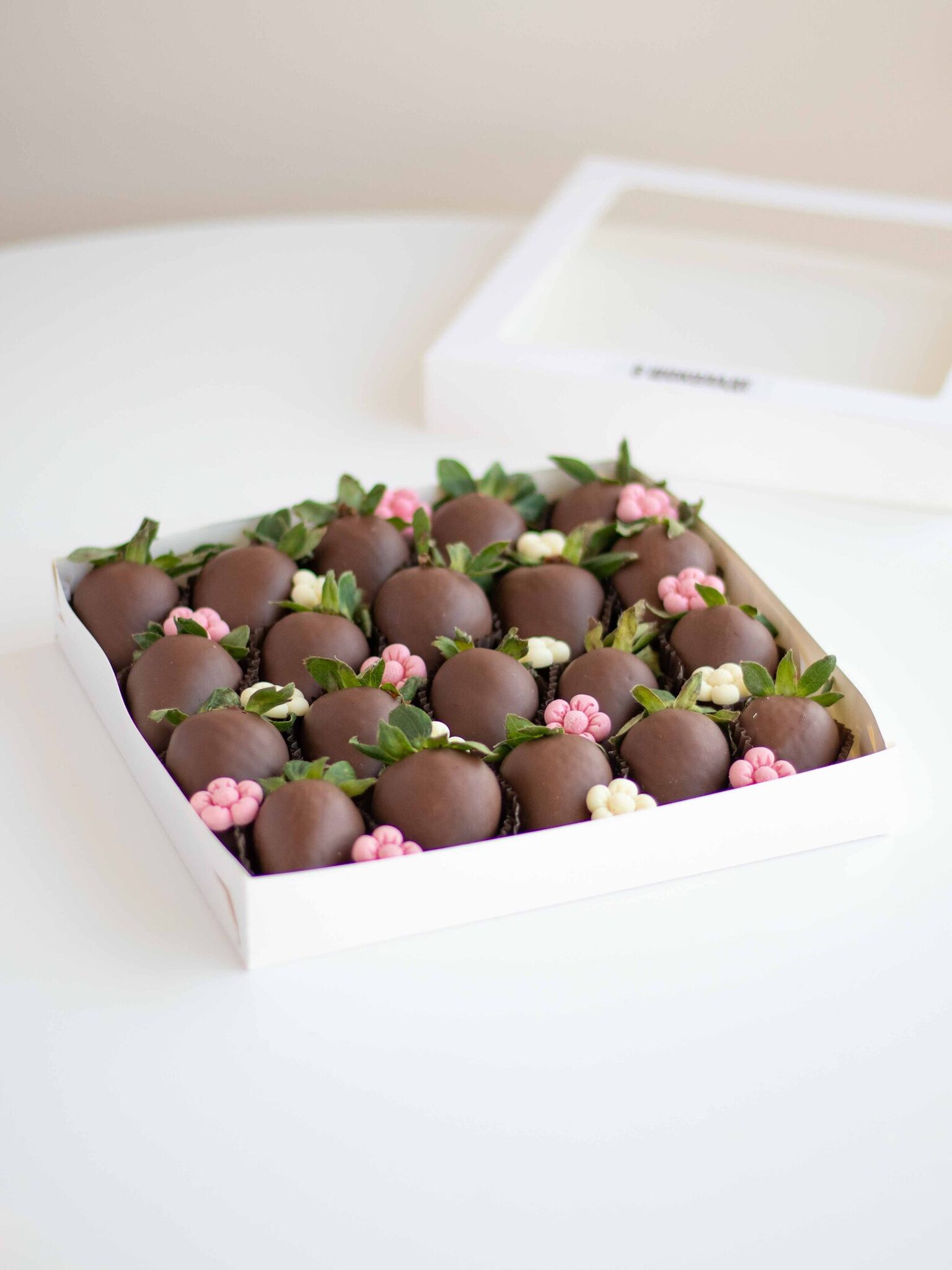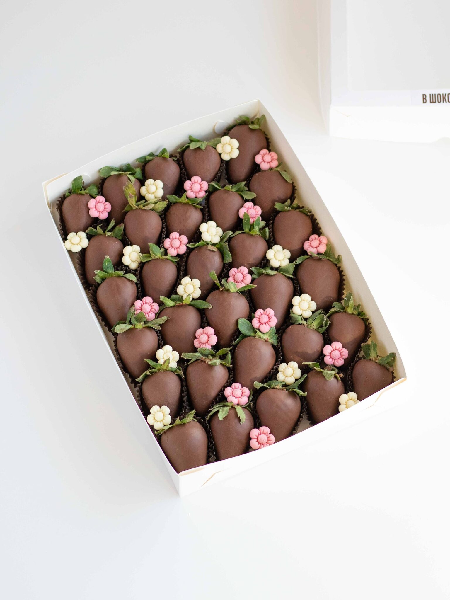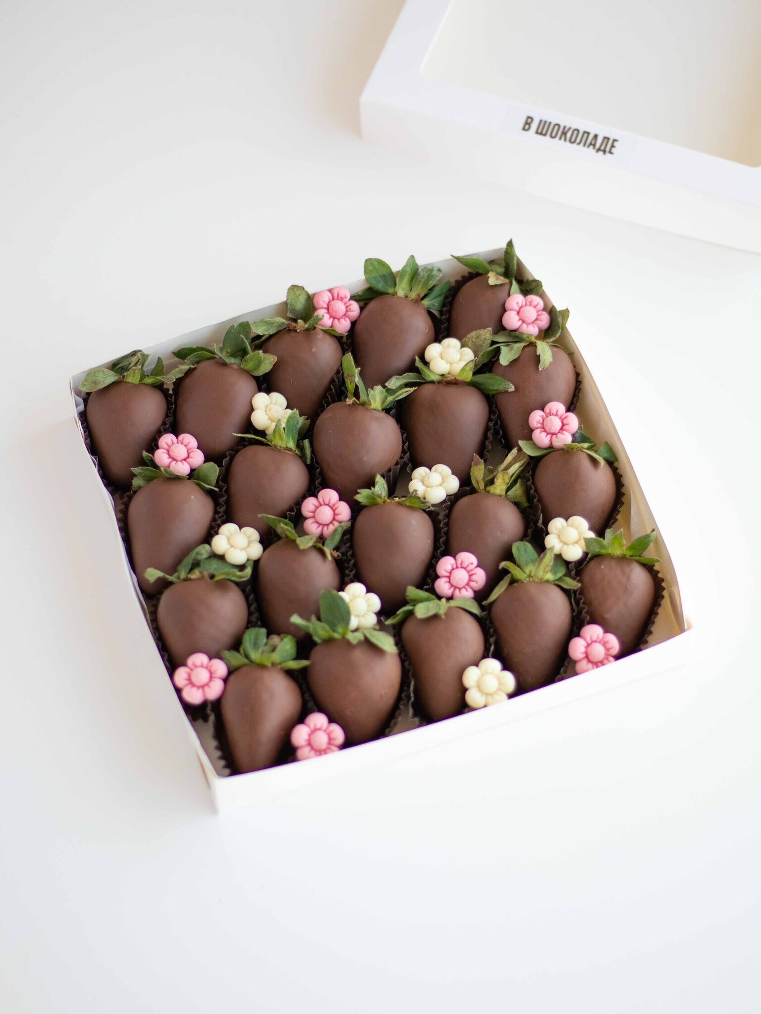 Мы работаем с клубникой сорта «Альбион» (Армения), а зимой - с египетской и греческой. Каждая ягода проходит ручной отбор. Покрываем её бельгийским шоколадом Barry Callebaut и Sicao, не используя глазурь и заменители.