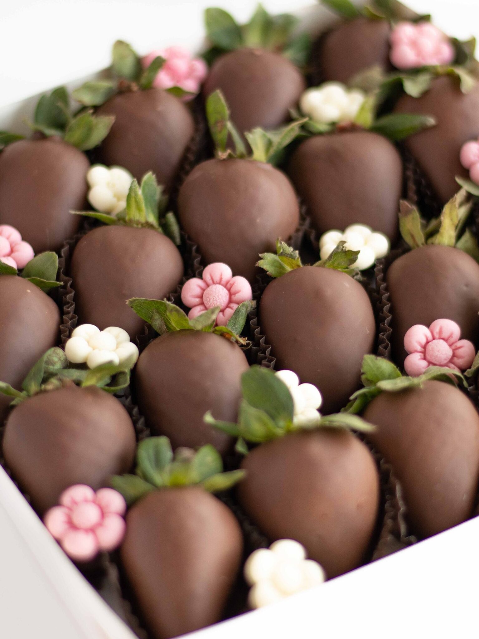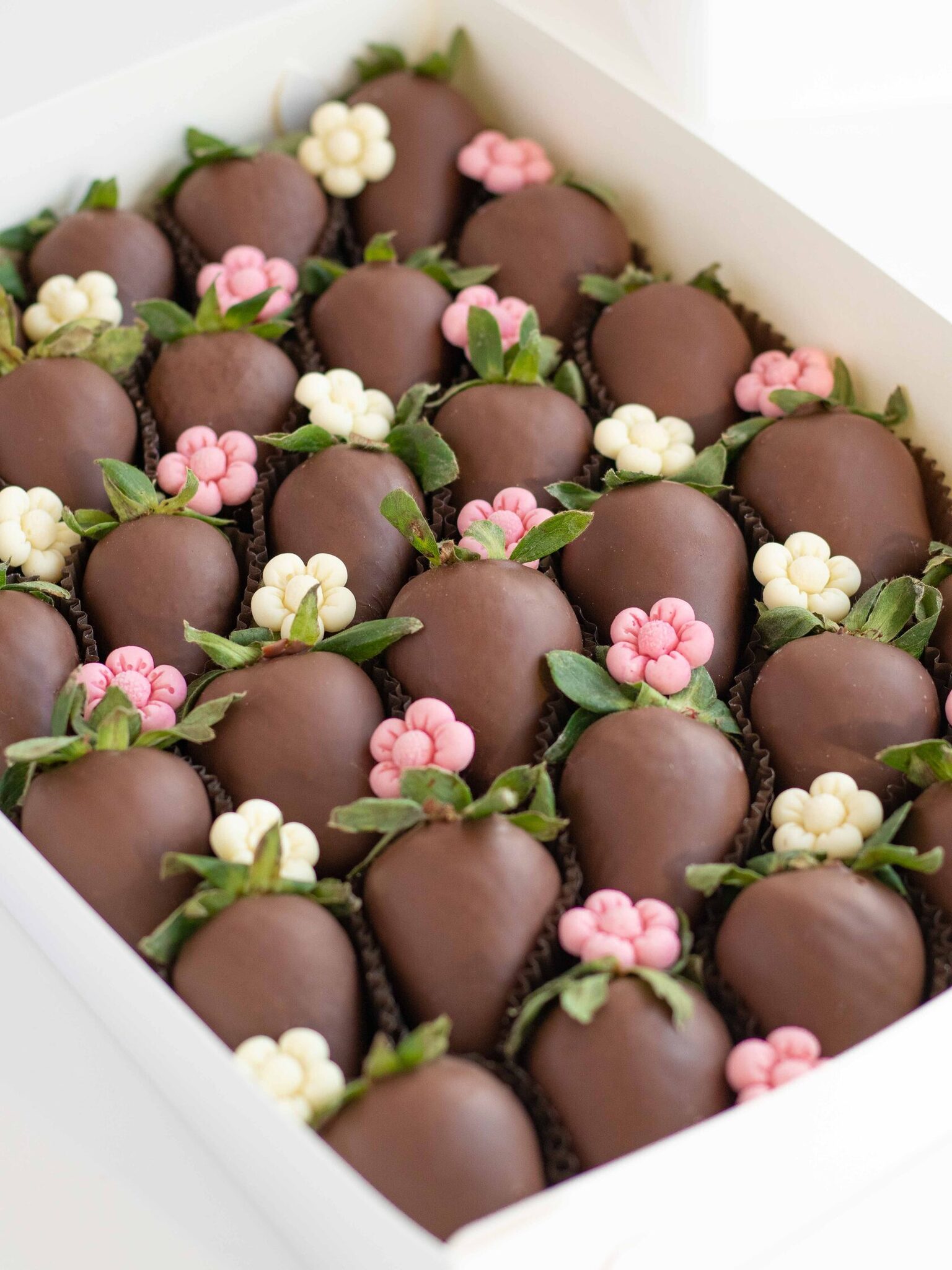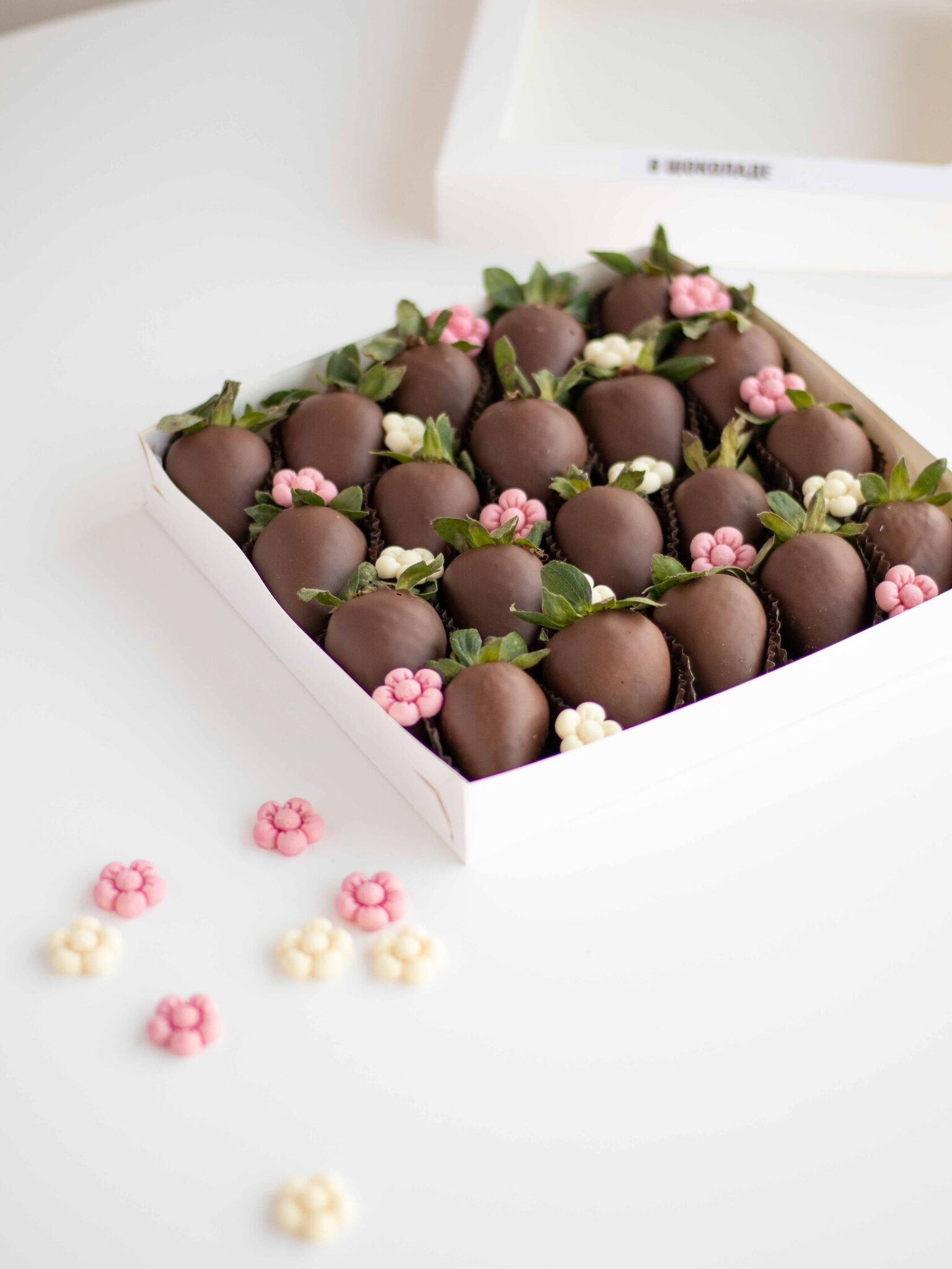 Мы работаем с клубникой сорта «Альбион» (Армения), а зимой - с египетской и греческой. Каждая ягода проходит ручной отбор. Покрываем её бельгийским шоколадом Barry Callebaut и Sicao, не используя глазурь и заменители.