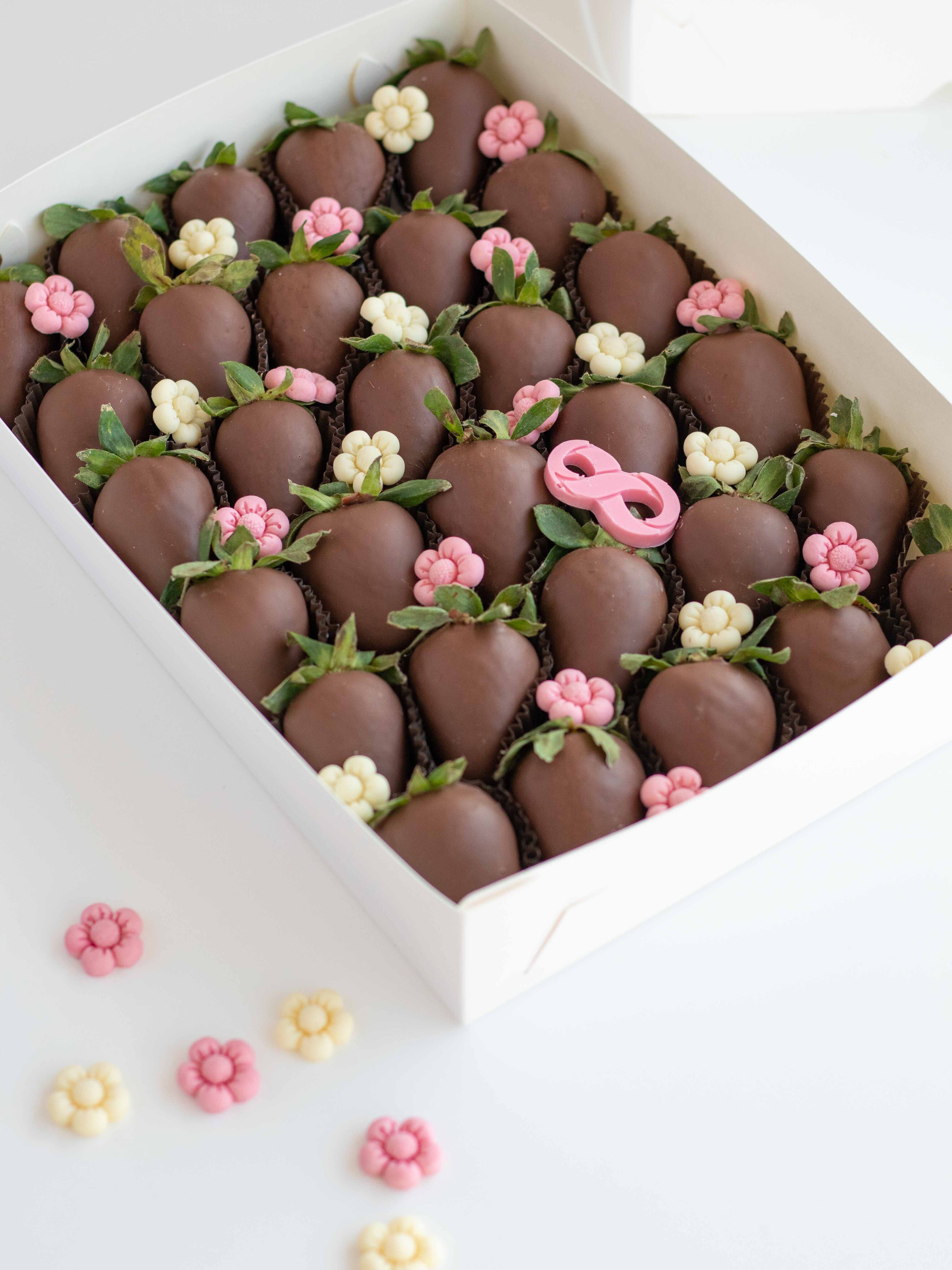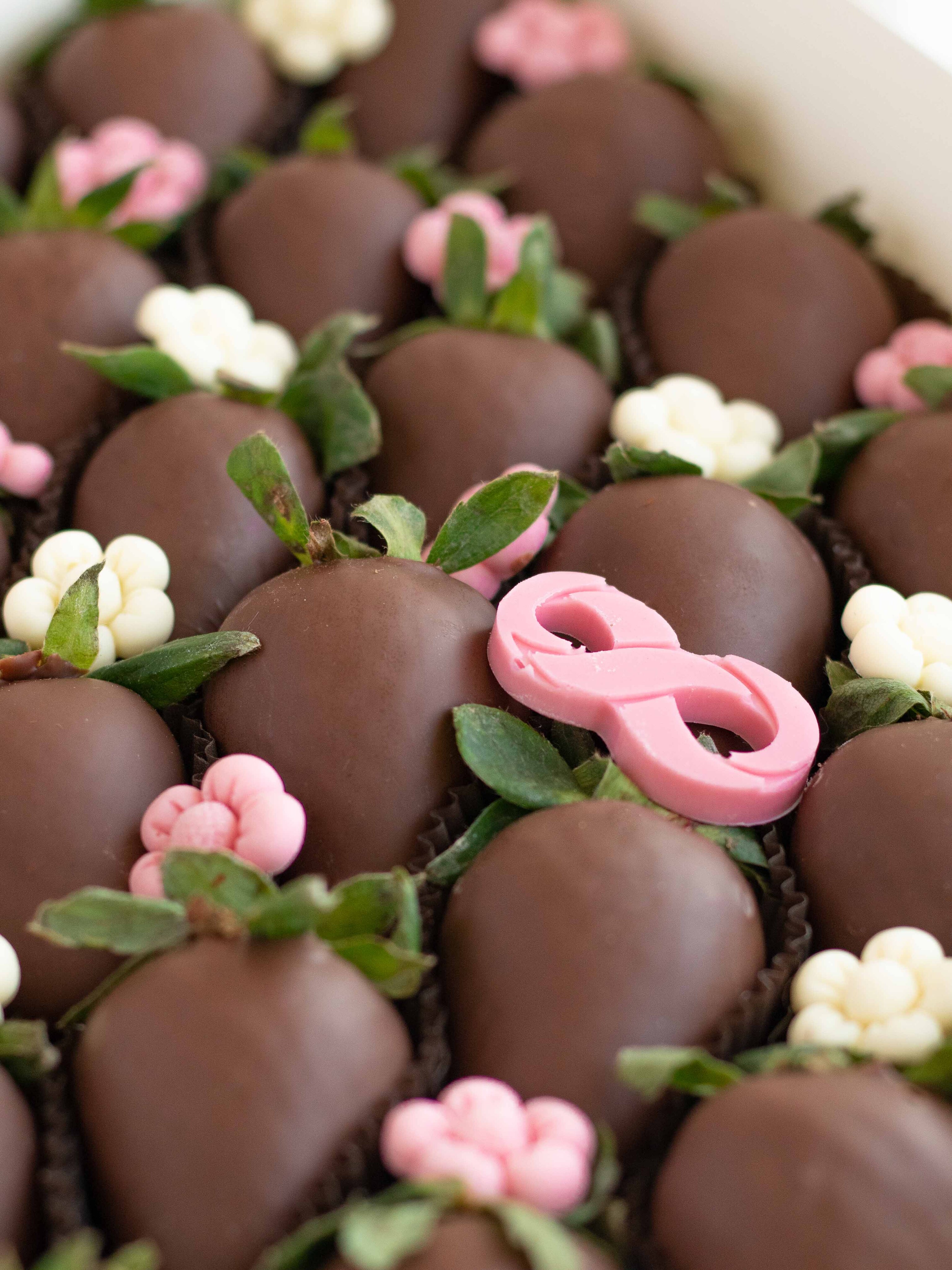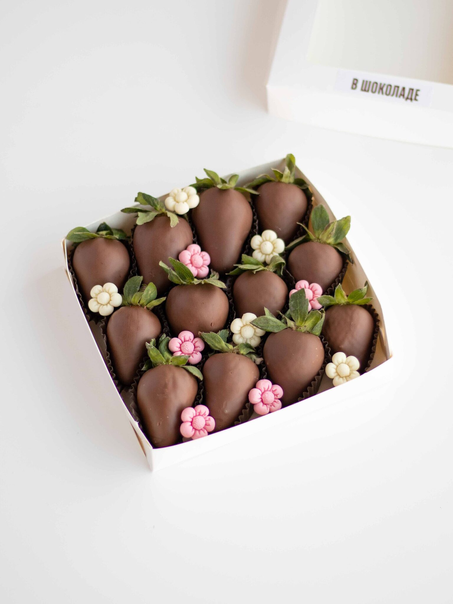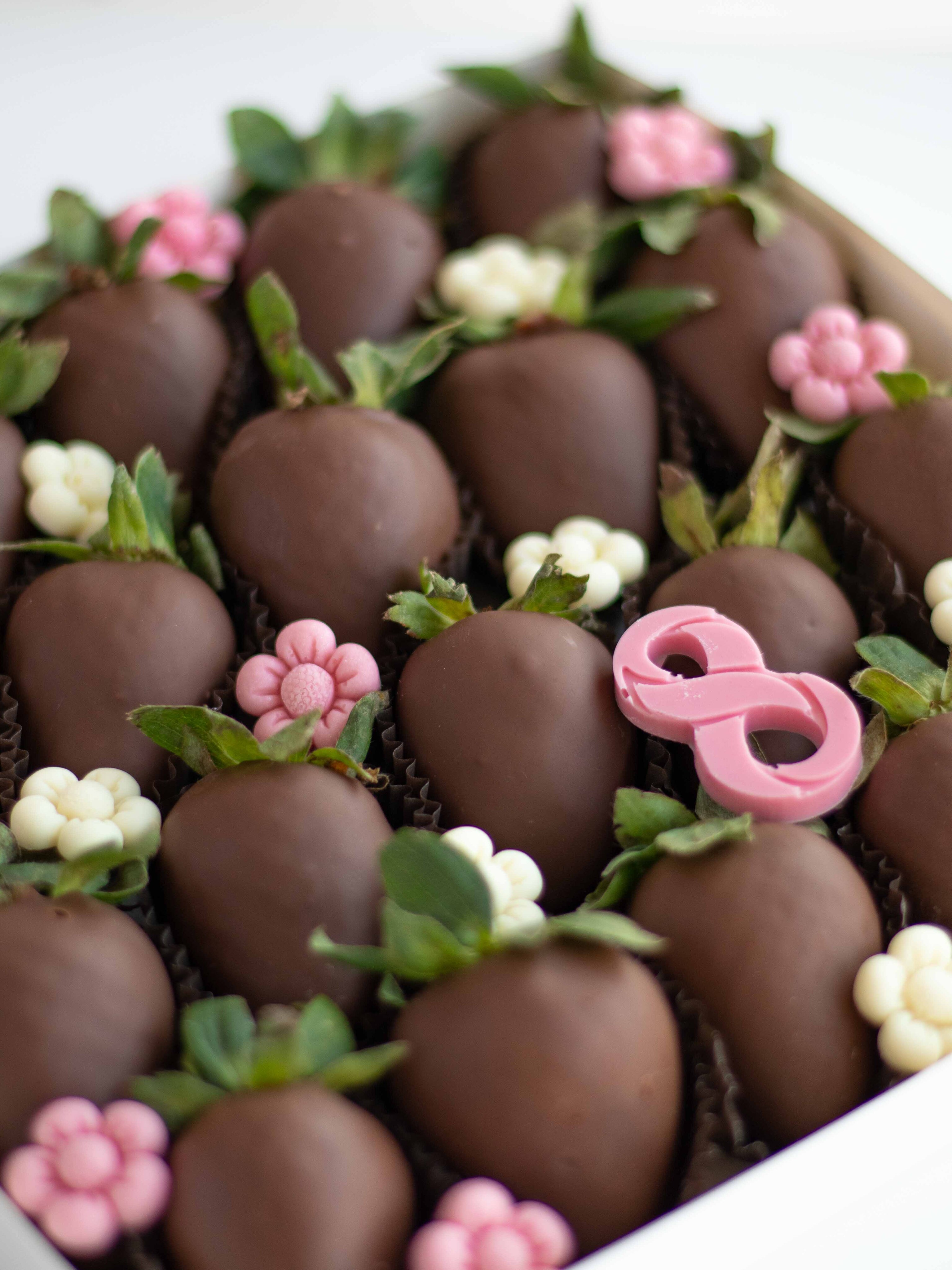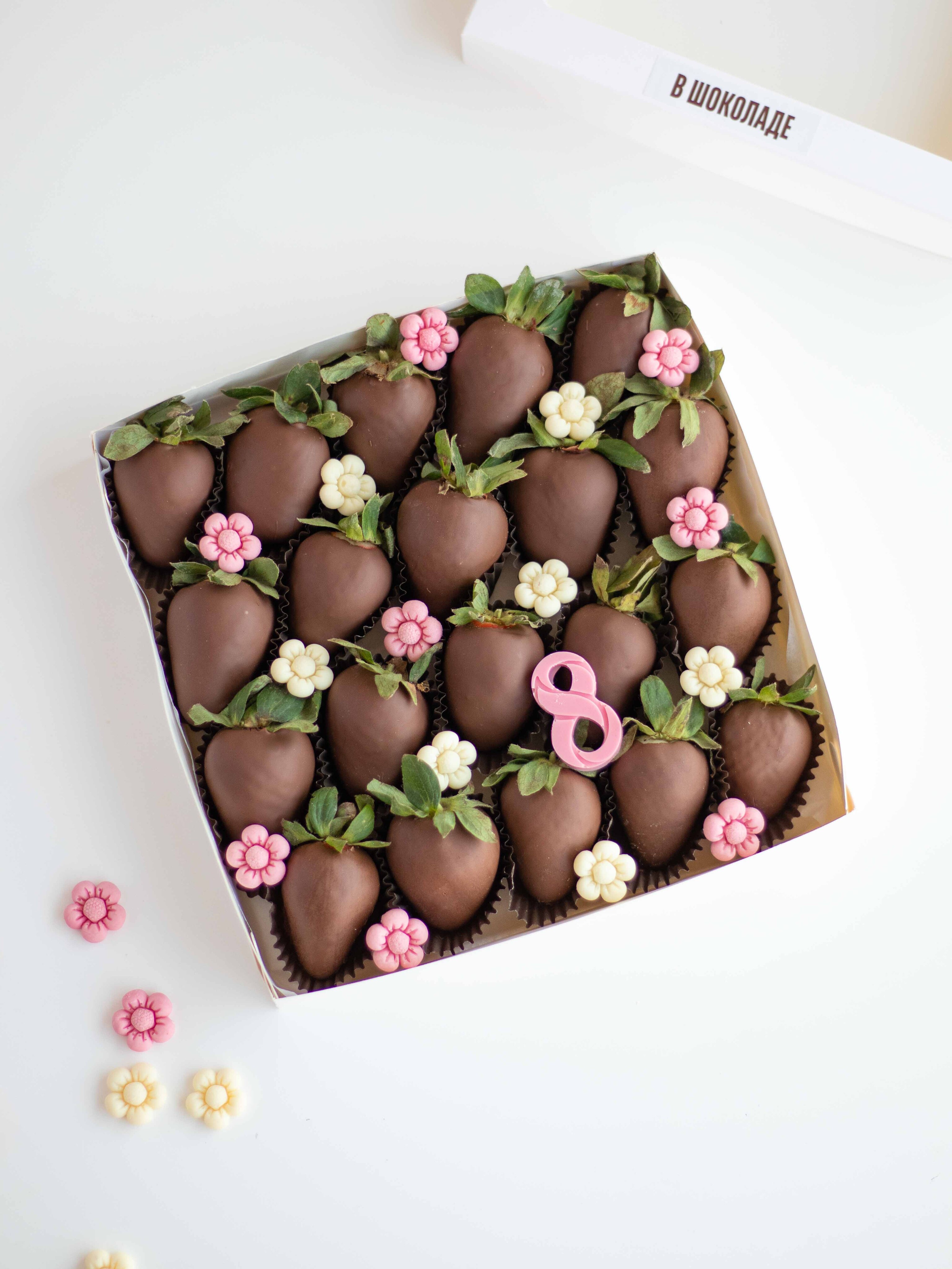 Состав: Клубника свежая отборная, Шоколад молочный, Шоколадный декор