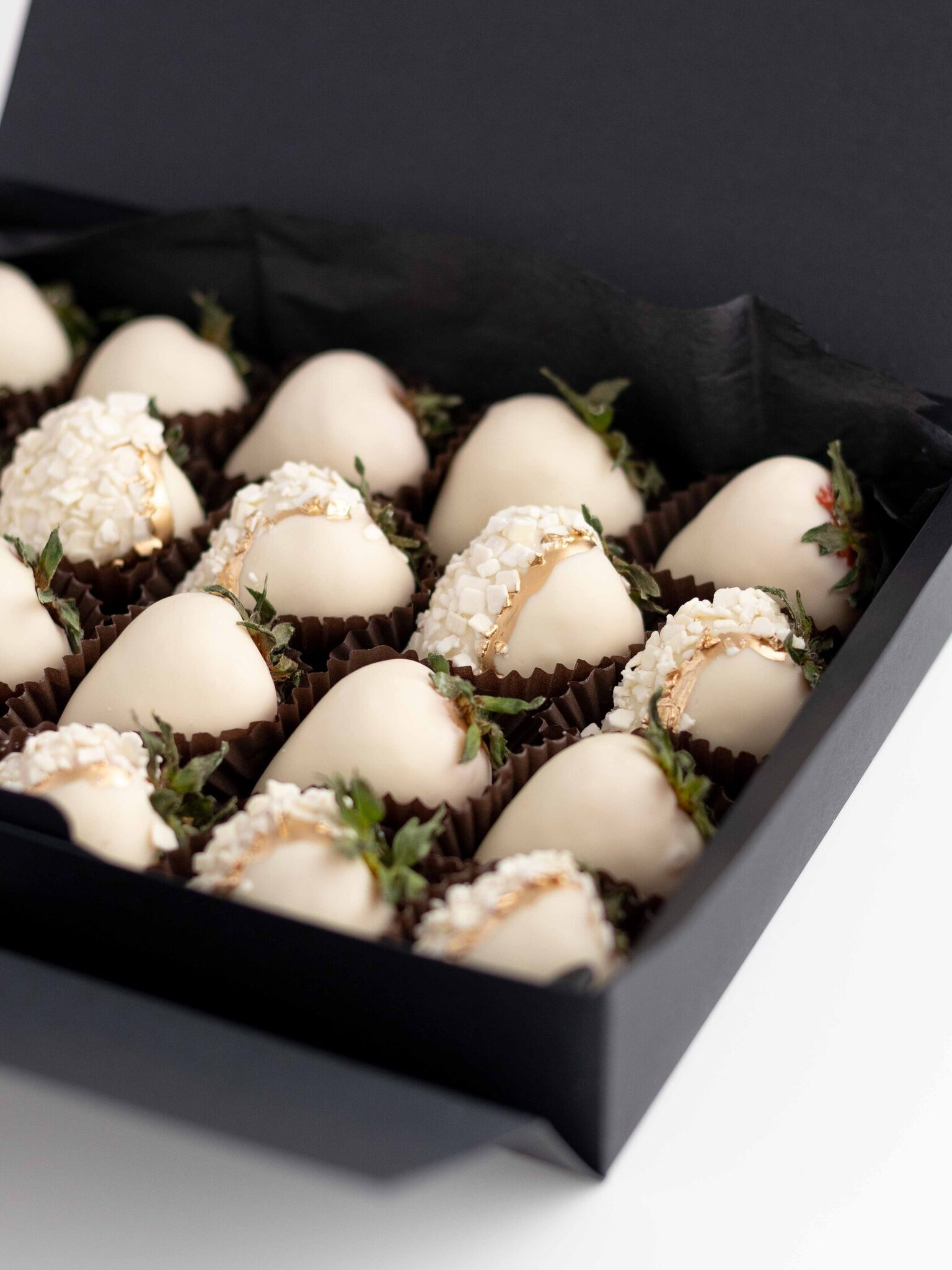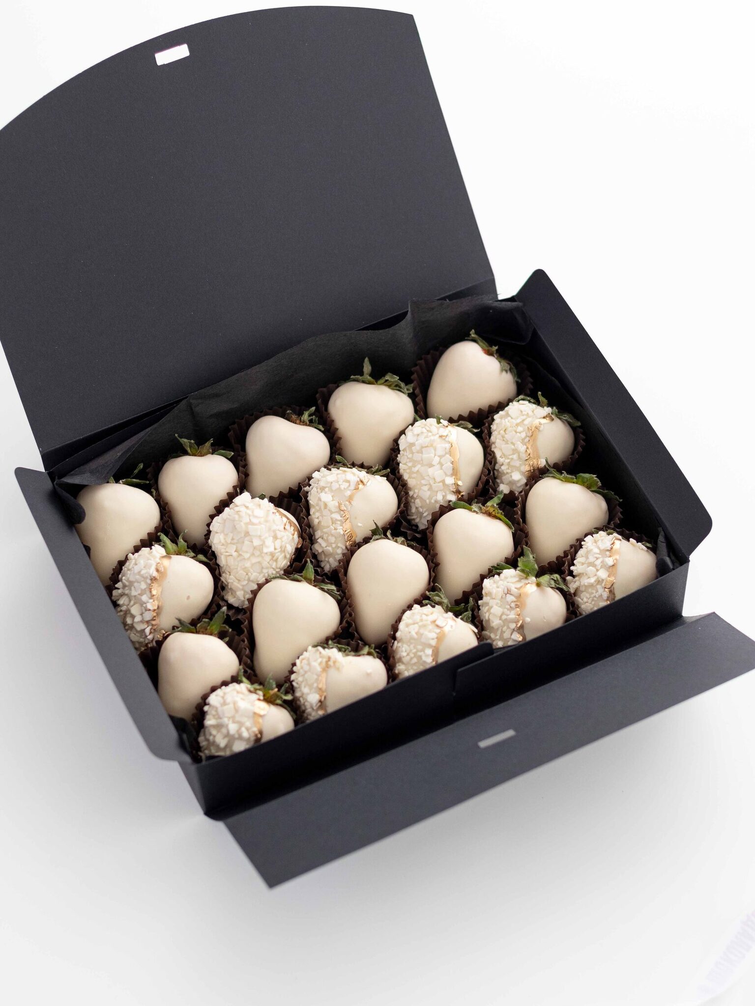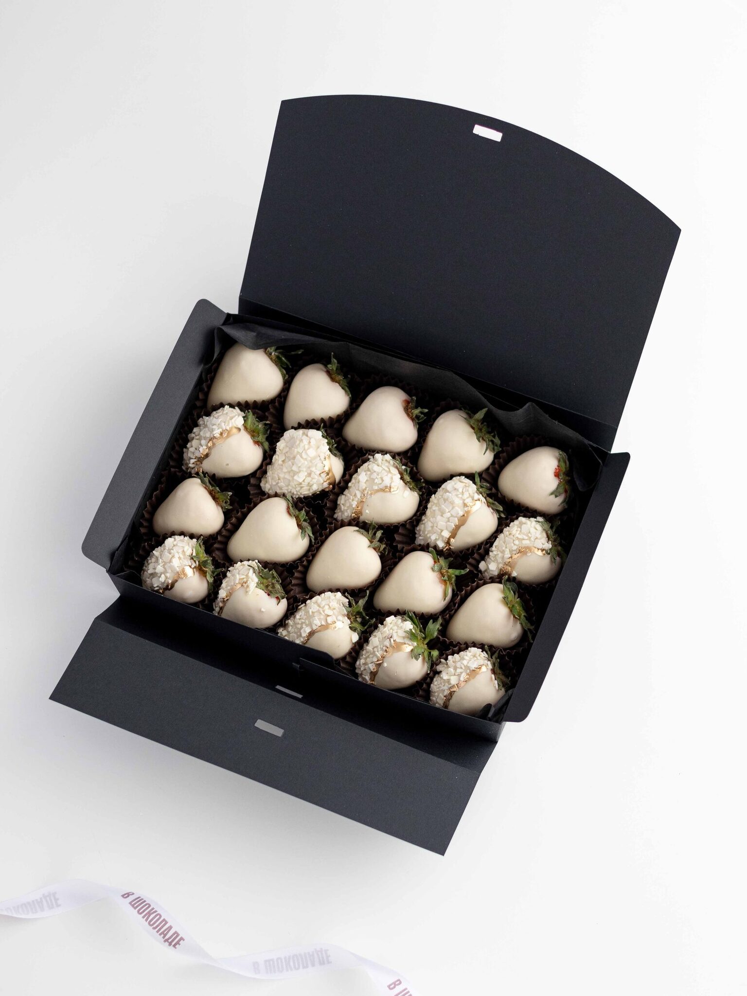 Мы работаем с клубникой сорта «Альбион» (Армения), а зимой - с египетской и греческой. Каждая ягода проходит ручной отбор. Покрываем её бельгийским шоколадом Barry Callebaut и Sicao, не используя глазурь и заменители.